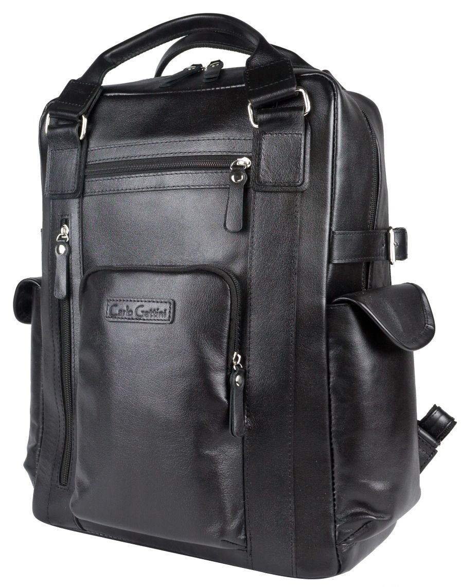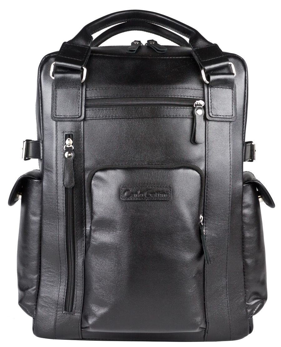 Кожаный рюкзак Corruda (Корруда) выполнен из натуральной кожи черного цвета. Этот объемный и вместительный рюкзак с двумя ручками для переноски Состоит из объемного отделения на молнии, внутри которого открытый карман и карман на молнии. Спинка сделана из сетчатого вентилируемого материала и уплотнена. Лямки регулируются по длине, сделаны мягкими с вентилируемой сеткой сзади. По бокам два вместительных кармана на кнопке. Спереди - три кармана на молнии. Видеобзор рюкзака: