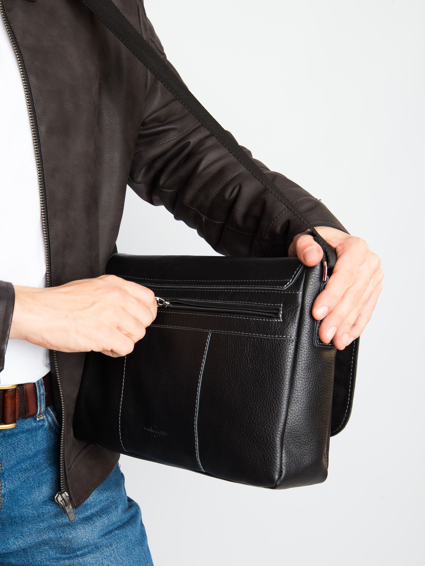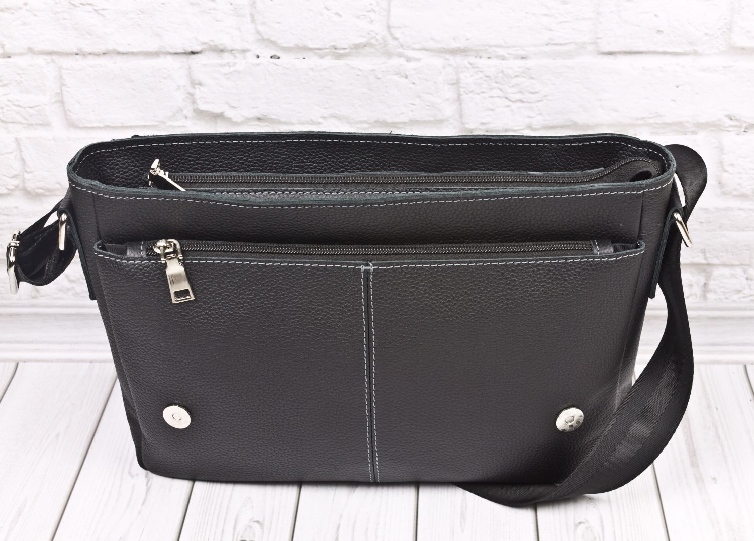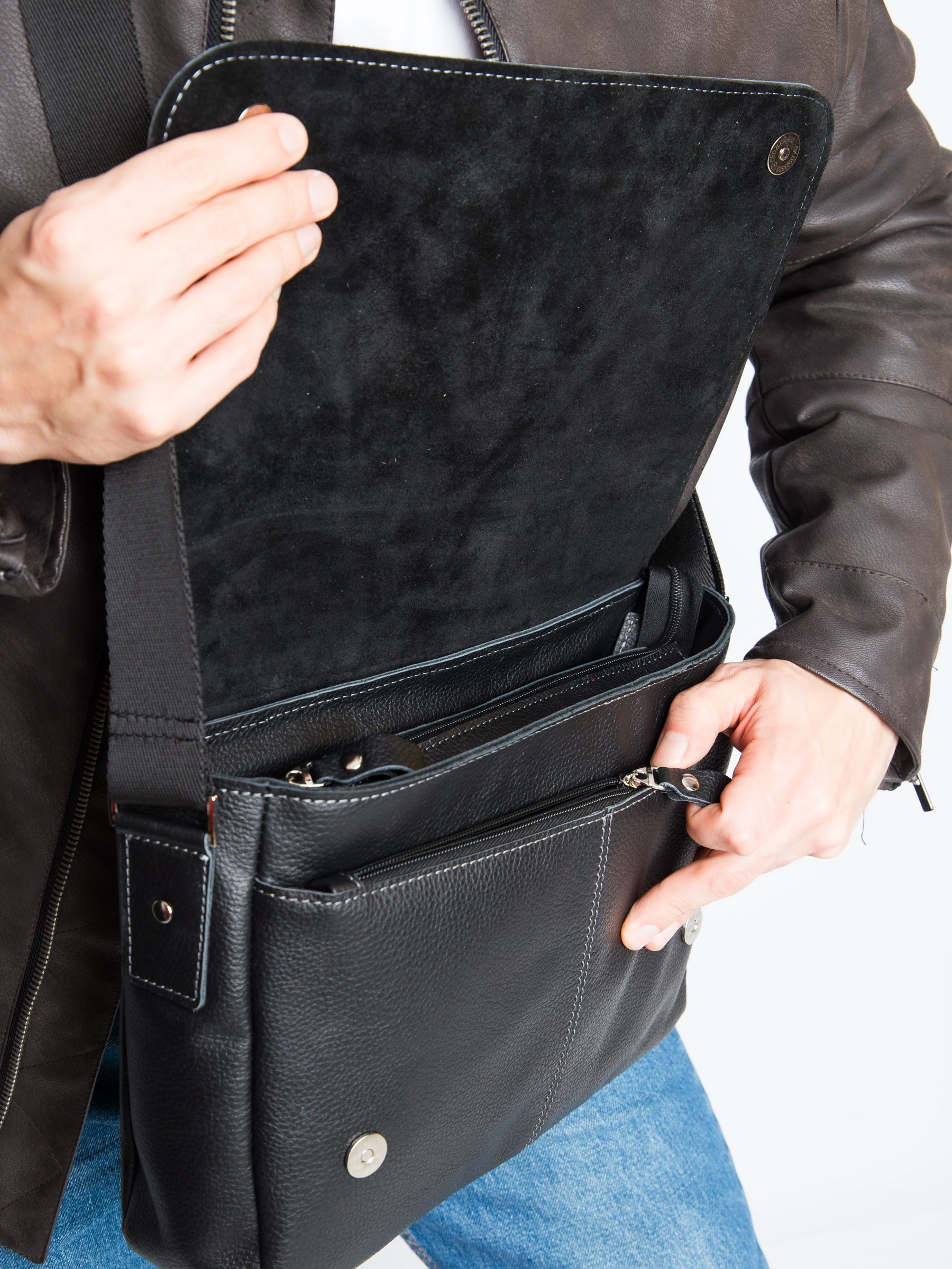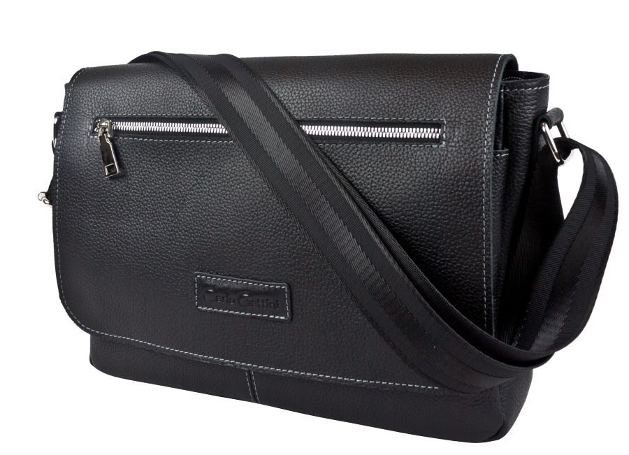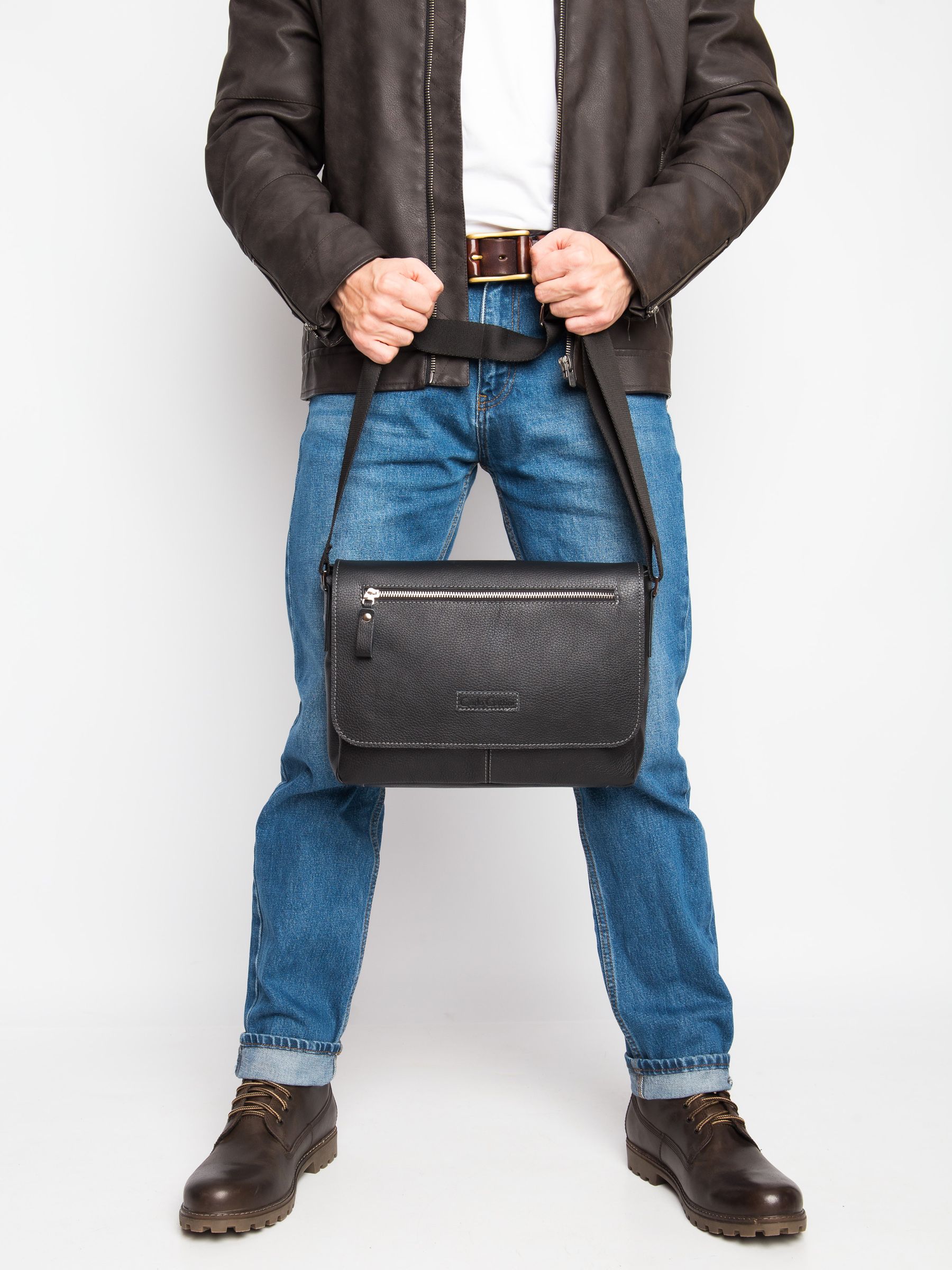 Мужская сумка мессенджер Caltrano (Кальтрано) выполнена из натуральной кожи черного цвета. Небольшая и удобная сумка через плечо вмещает формат А4. Состоит из основного отделения под клапаном на молнии, внутри карман- перегородка на два отделения, карман на молнии и два открытых кармана. Спереди под клапаном объемный карман на молнии. Карман на молнии на клапане. Сзади - карман на молнии. Видеообзор сумки:
