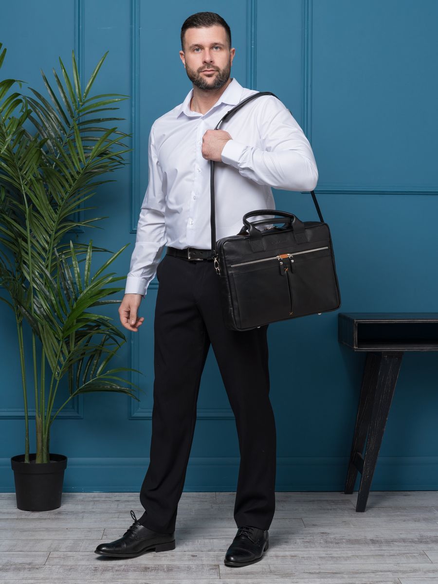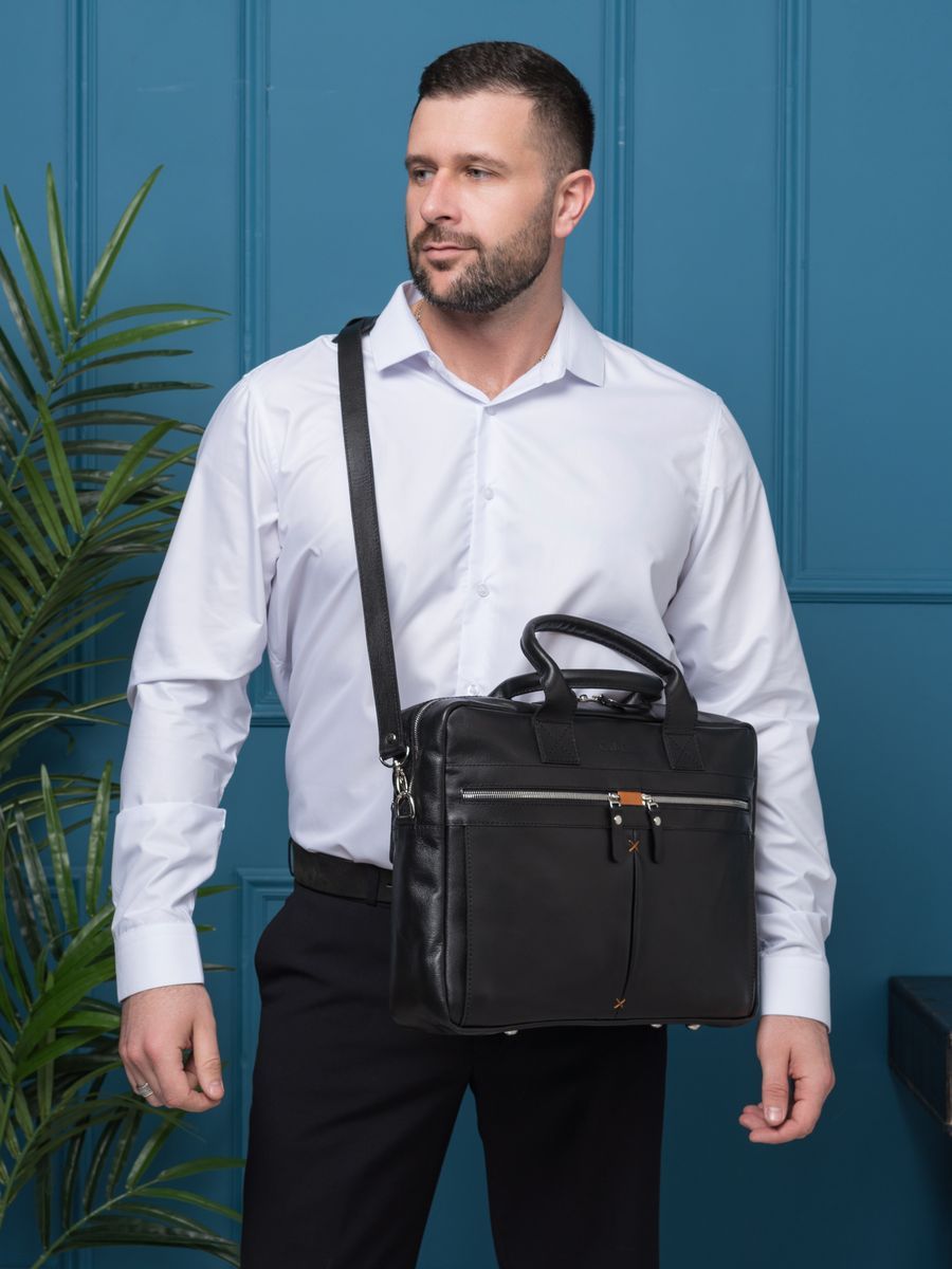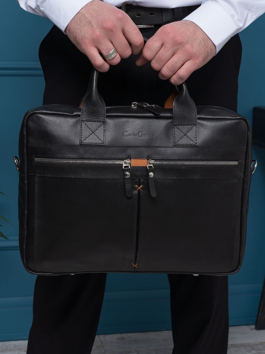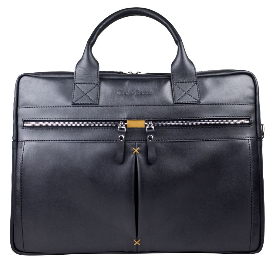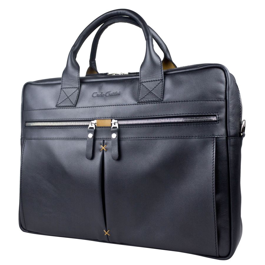 Кожаная сумка для ноутбука Carlo Gattini Montebello (Монтебелло) выполнена из натуральной кожи черного цвета. Состоит из основного отделения на молнии, внутри которого есть карман на молнии и отделение для ноутбука с диагональю до 15,6 дюймов. На задней стенке: карман на молнии. На передней: два кармана на молнии Молнии металлические. В комплекте есть съемный кожаный наплечный ремень. Видеобзор сумки: