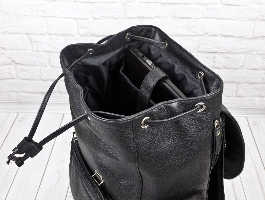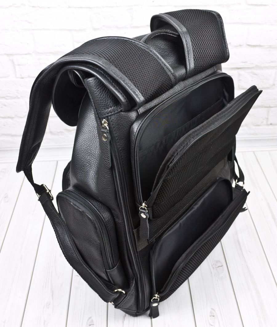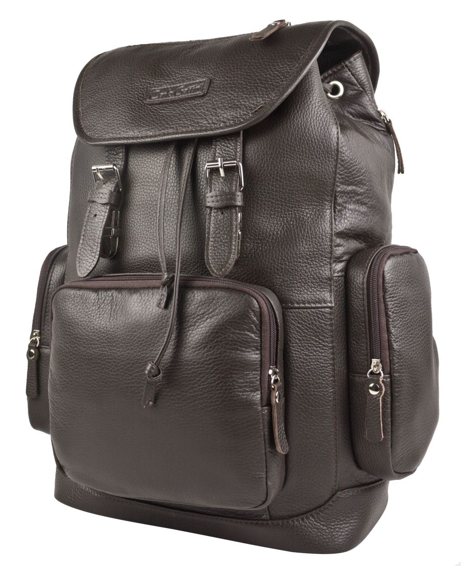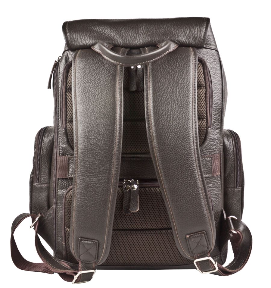 Кожаный рюкзак Vetralla (Ветралла) выполнен из натуральной кожи темно-коричневого цвета. Этот мужской рюкзак отлично подходит для путешествий, командировок, спорта и повседневного использования. Очень вместительный, удобный и продуманный. Состоит из объемного отделения под клапаном на кожаном шнурке и уплотненного отделения на липучке со стороны спинки. Клапан закрывается портфельными цупферными замками. В большом отделении есть карман на молнии, открытый карман и отделение для ноутбука с диагональю до 15,6 дюймов. В основное же отделение помещается ноутбук с диагональю до 17,3 дюйма. Спинка сделана из сетчатого вентилируемого материала и уплотнена. На спинке сделаны два кармана на молнии - 17х25 см и 15х25 см. Лямки регулируются по длине, сделаны мягкими с вентилируемой сеткой сзади. Ширина лямок сверху - 9 см. По бокам два вместительных кармана на молнии размером 20х11 см. Также на спинке сбоку есть объемный карман на молнии для ноутбука до 14 дюймов или документов А4. Длина молнии 37 см. Спереди - накладной карман на молнии размером 18х21 см. За счет регулируемого клапана вместительность рюкзака увеличивается. Видеообзор рюкзака: