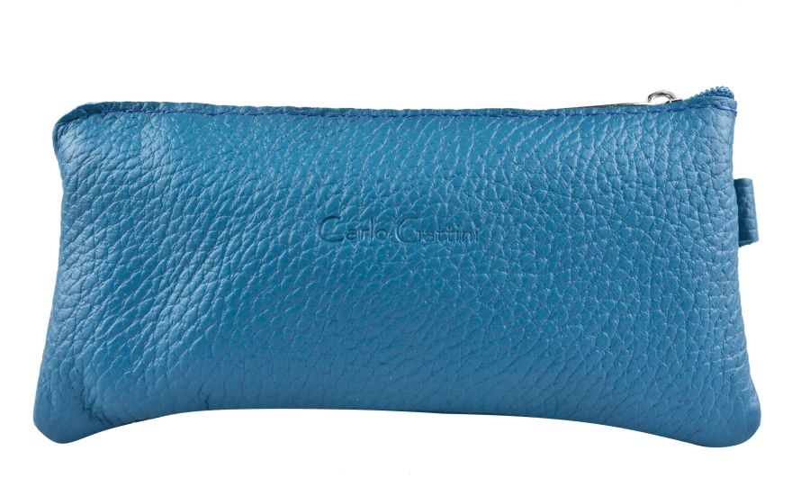 Ключница Fresine (Фрезине) выполнена из натуральной кожи голубого цвета с бирюзовым оттенком. Внутри кольцо для ключей, сзади - карман на молнии.