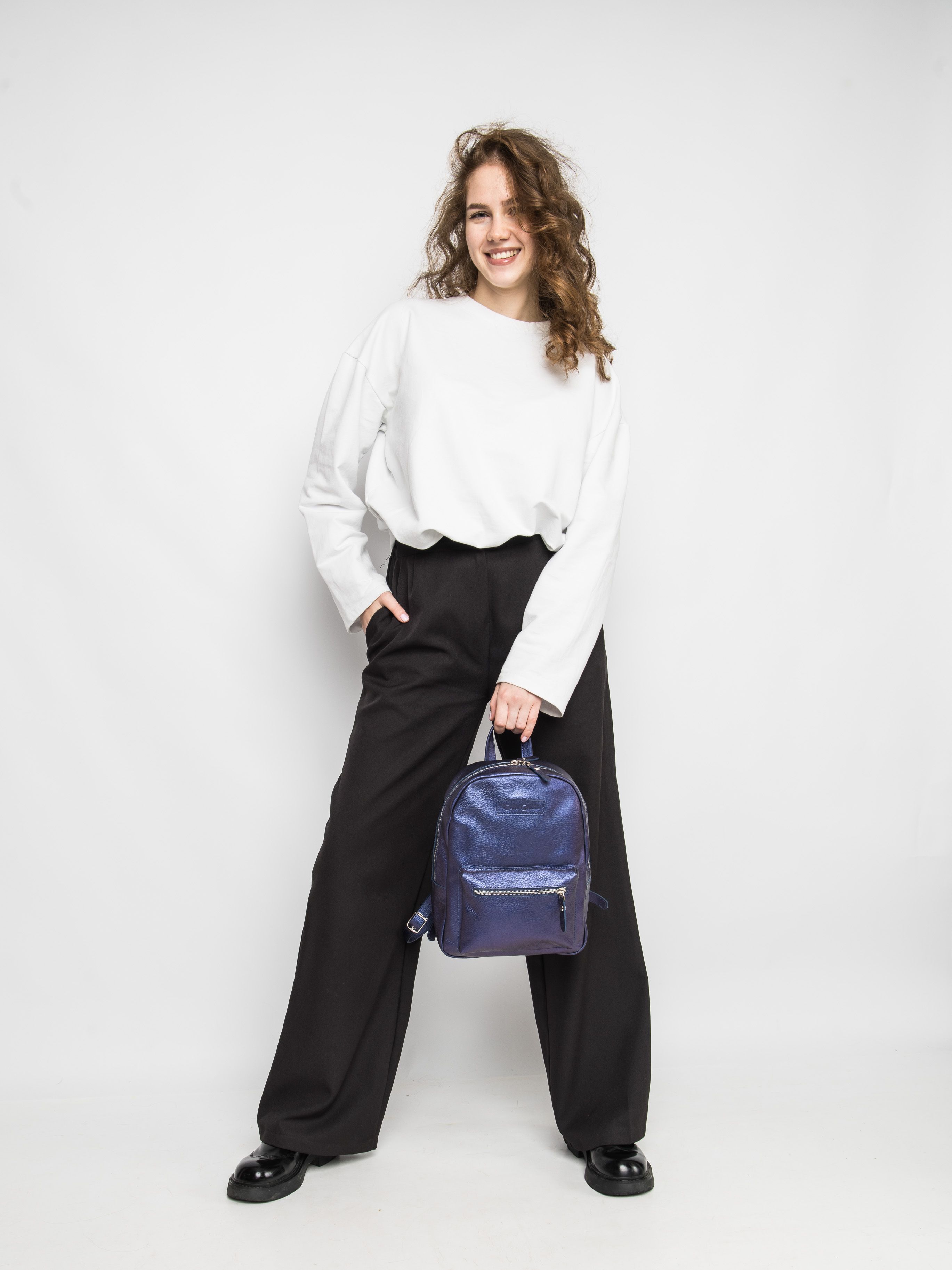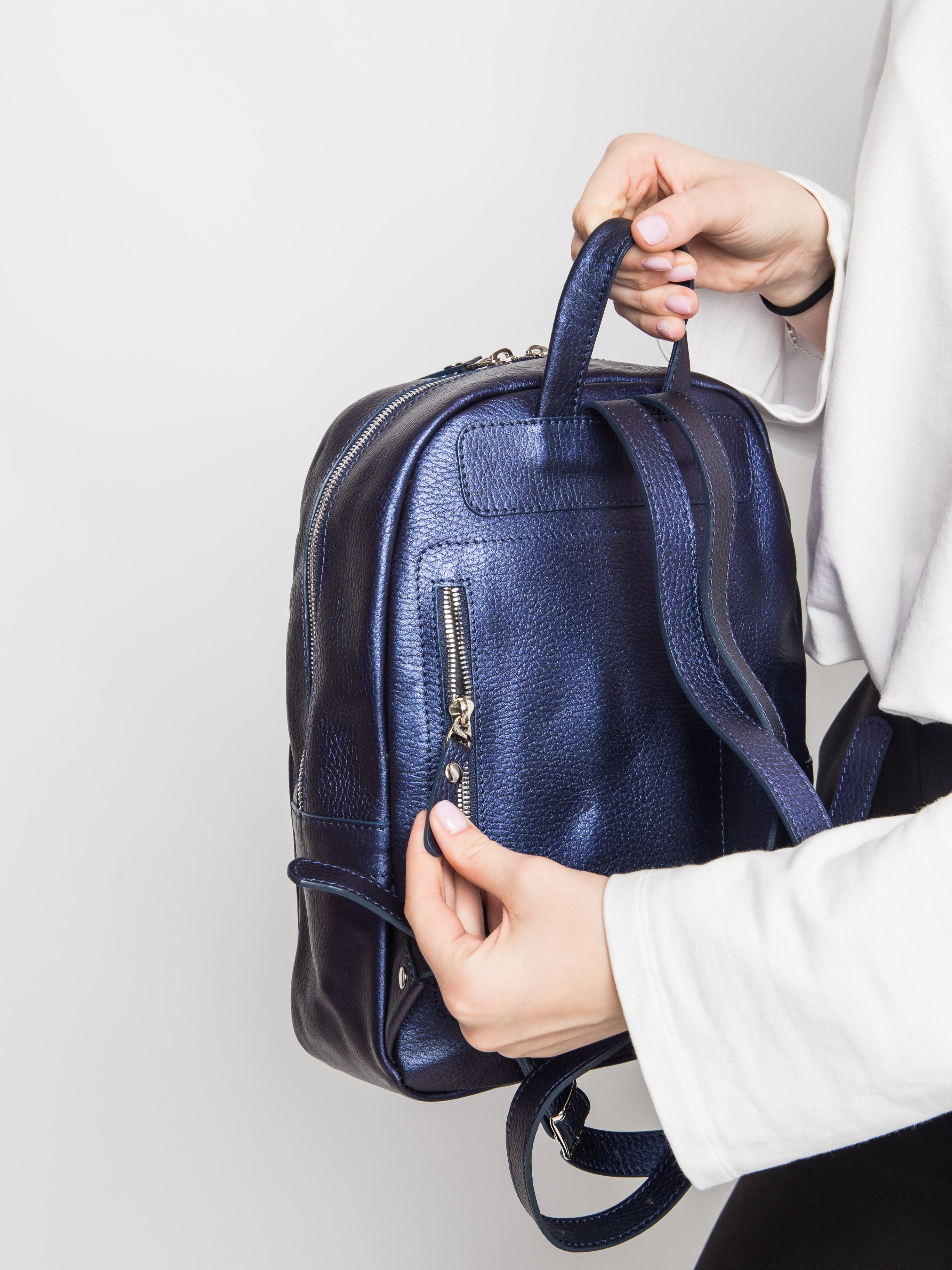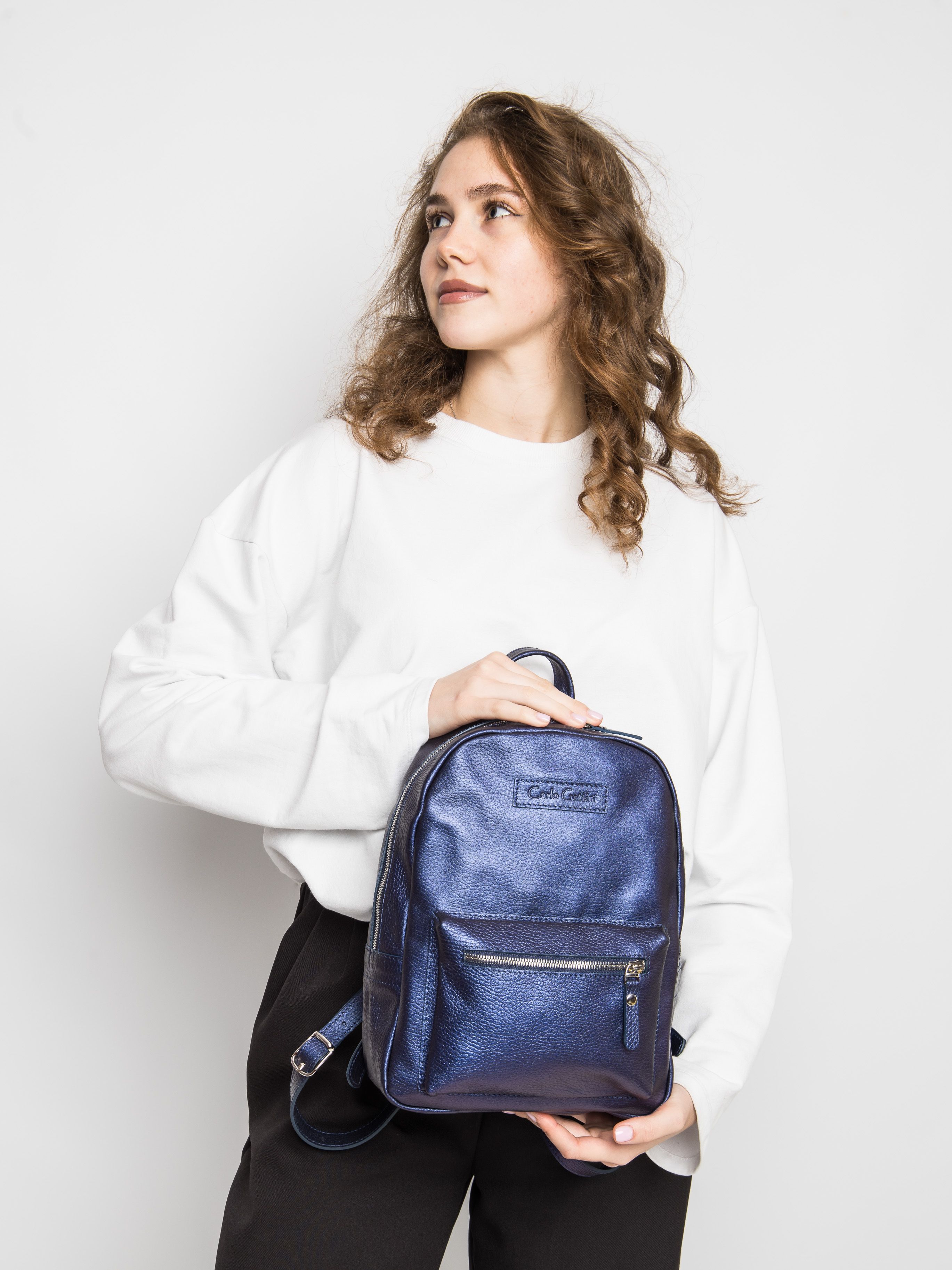 Женский рюкзак Anzolla (Анцолла) выполнен из уникальной премиальной натуральной кожи сине-фиолетового цвета с эффектом "Хамелеон". Состоит из основного отделения на молнии, внутри которого находится отделение на молнии и отделения для мелочей. Спереди накладной карман. Сзади - карман на молнии. Молнии металлические. Рюкзак выполнен полностью без подклада. Видеообзор рюкзака: