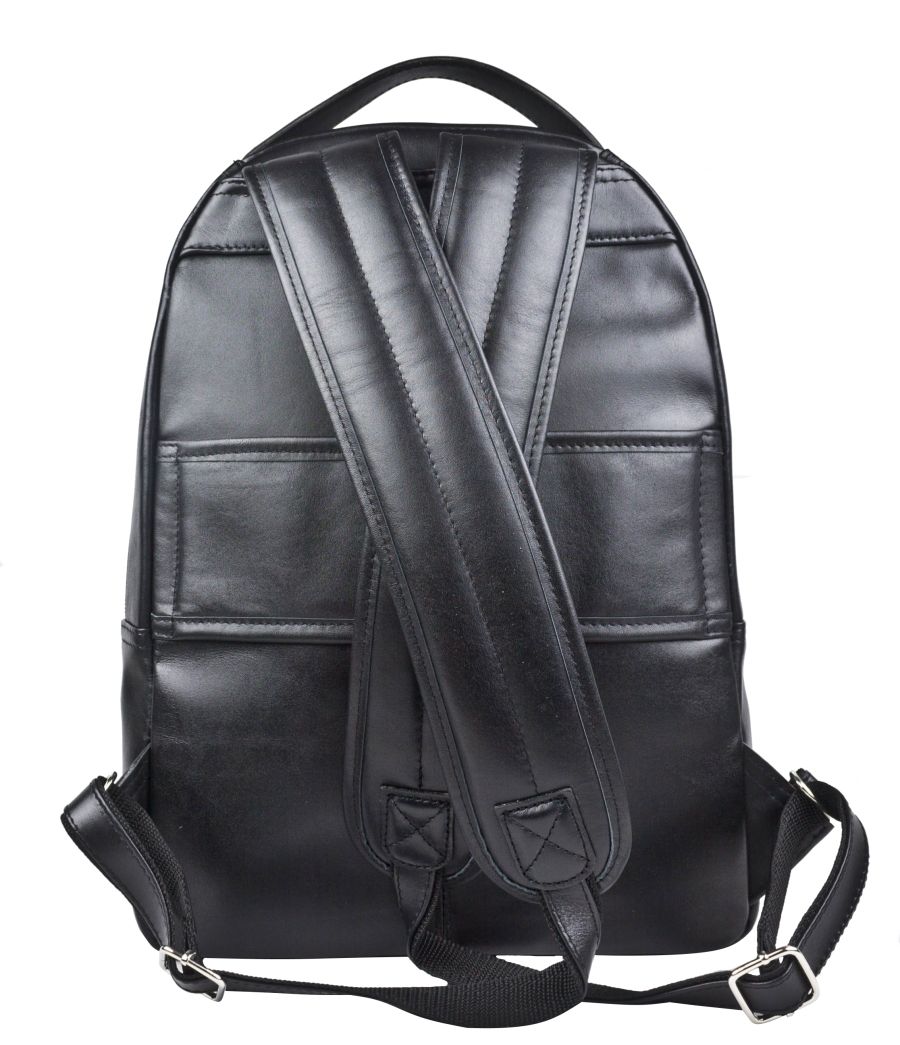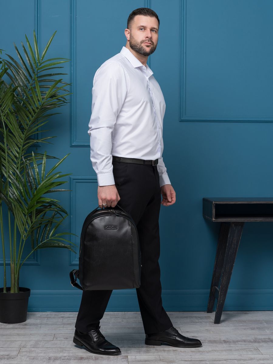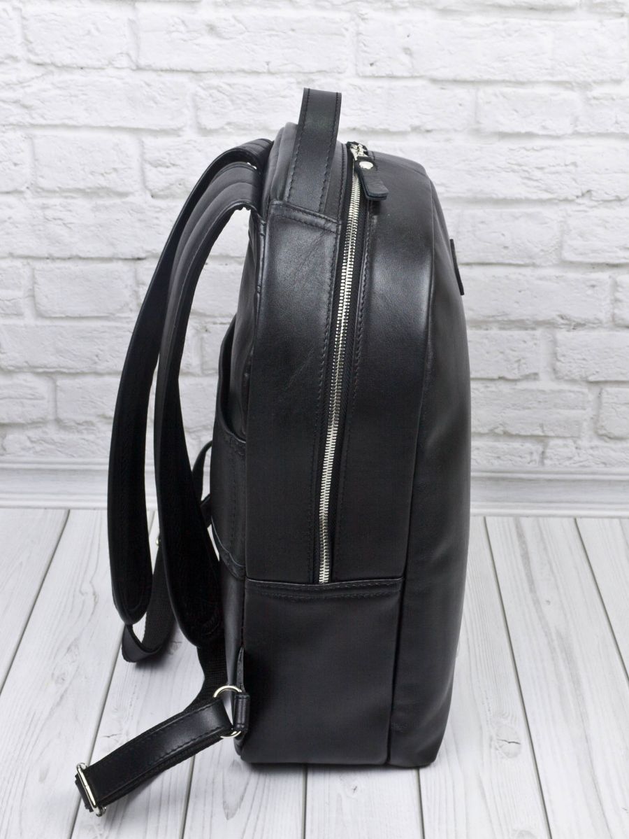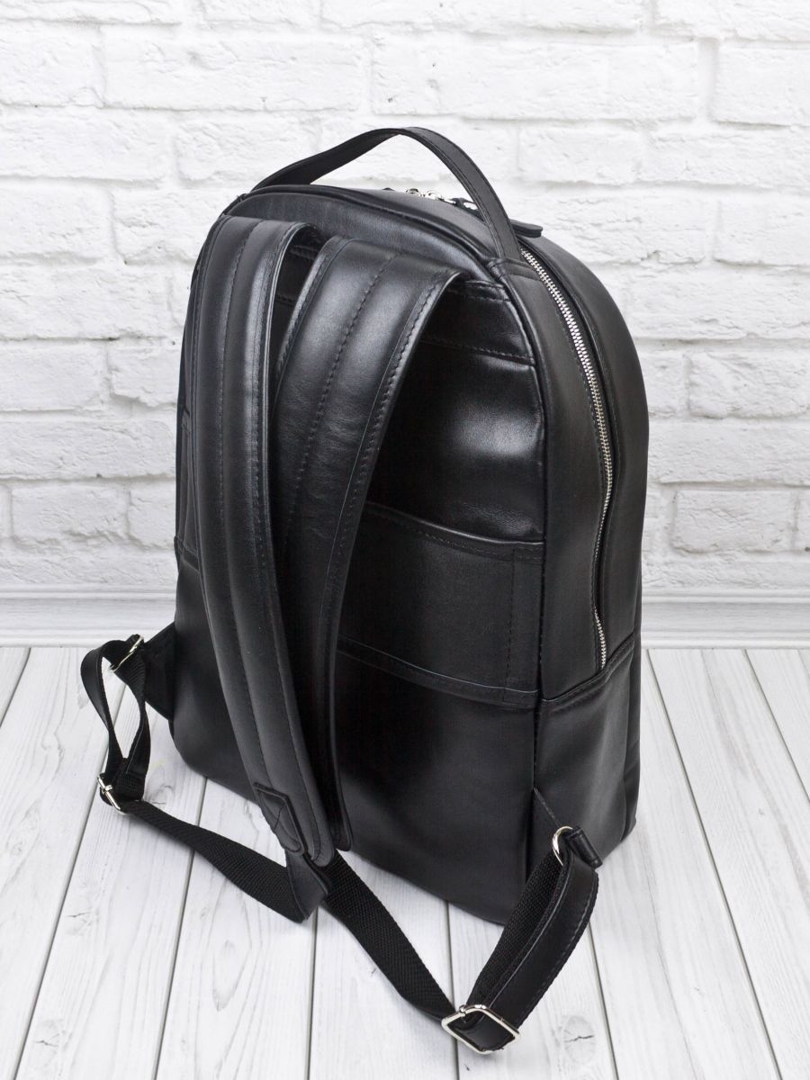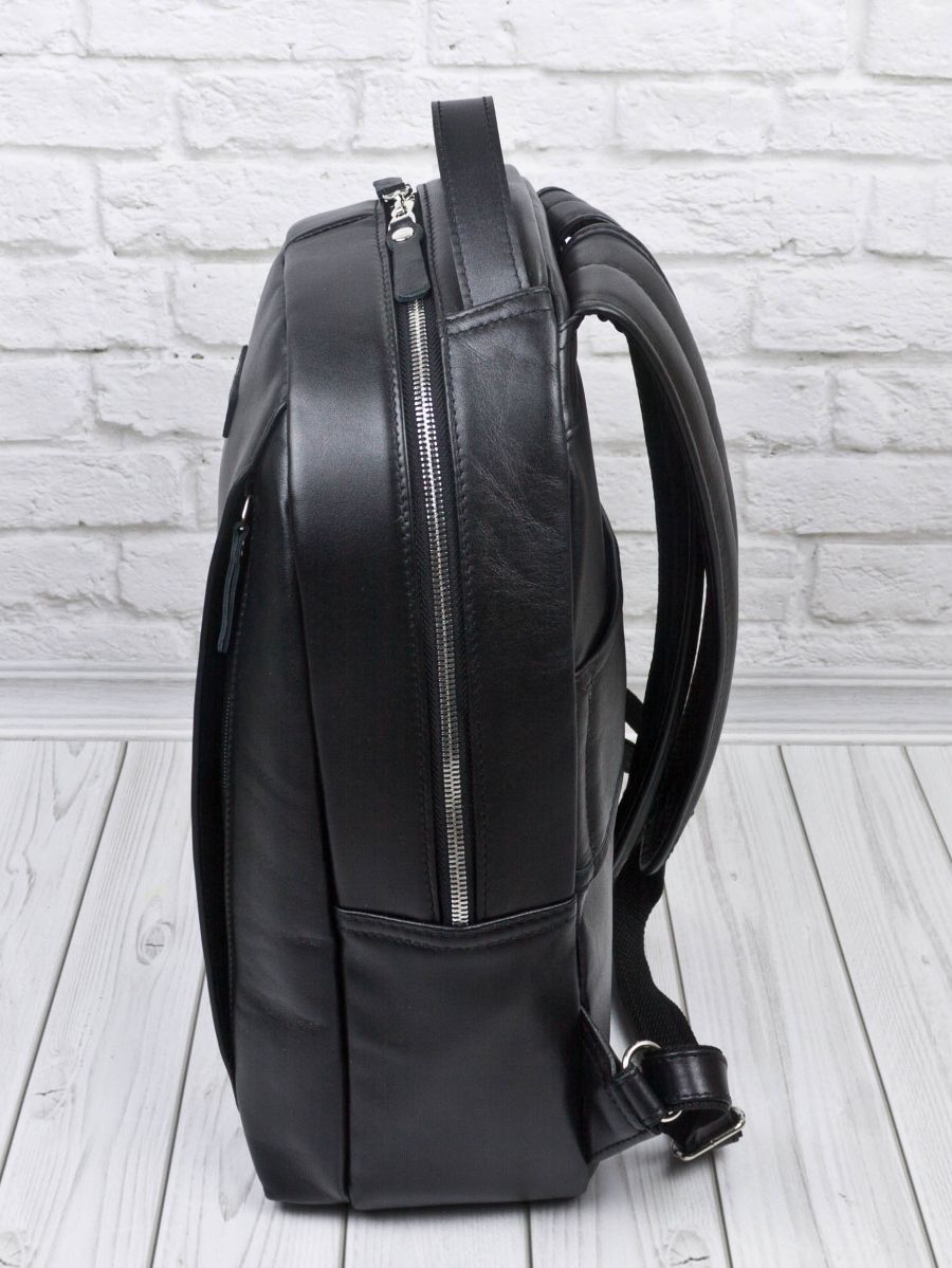 Кожаный рюкзак Ferramonti (Феррамонти) выполнен из премиальной натуральной кожи черного цвета. Это классический лаконичный рюкзак среднего размера, идеально подходит для ежедневной эксплуатации. Сочетается с любой одеждой. Состоит из основного отделения, внутри которого 2 открытых кармана, карман на молнии и отделение для ноутбука с диагональю до 14 дюймов. Спереди есть вместительный карман на молнии, внутри которого открытый карман-сетка и карман на молнии. Спинка сделана полностью из натуральной кожи и уплотнена. На спинке есть крепление на ручку чемодана. Лямки шириной 7 см регулируются по длине, сделаны мягкими с вентилируемой сеткой сзади. Видеобзор рюкзака: