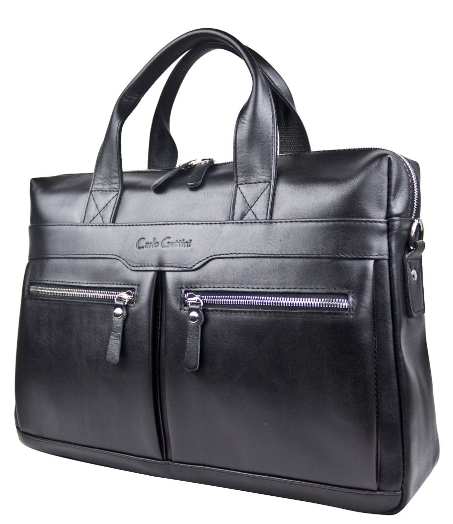 Кожаная сумка для ноутбука Carlo Gattini Lugano (Лугано) выполнена из натуральной премиальной кожи черного цвета. Состоит из основного отделения на молнии, внутри которого есть отделение для ноутбука с диагональю до 13 дюймов (если ноутбук размещать в основном отделении, то до 15,6 дюймов). Внутри есть карман на молнии и отделения для мелочей. На задней стенке: карман на молнии. На передней: два кармана на молнии. В комплекте есть съемный кожаный наплечный ремень. Обзор сумки для ноутбука: