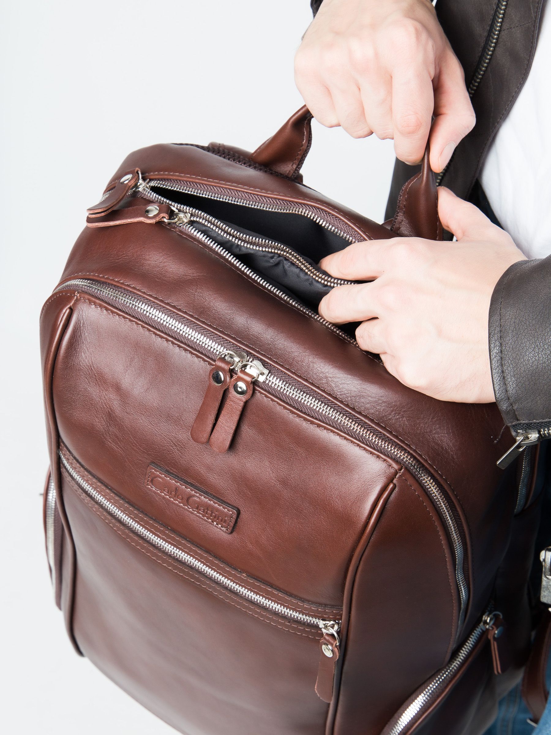 Кожаный рюкзак Vicoforte (Викофорте) выполнен из премиальной натуральной кожи коричневого цвета. Это очень большой и вместительный рюкзак для ноутбука, который может выполнить практически любую задачу своего владельца. Состоит из двух объемных отделений на молнии. Внутрь одного (ближе к спинке) помещается ноутбук с диагональю до 17,3 дюйма. Внутри второго карман на молнии, открытые карманы. Спереди: карман на молнии 27х22 см. Сзади: карман на молнии 30х14 см Сверху: карман на молнии 16х13 см По бокам: карманы на молнии 18х12 см. Спинка выполнена из мягкого сетчатого материала для вентиляции. Видеообзор рюкзака: