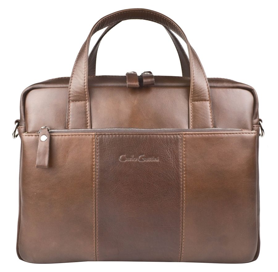 Сумка Carlo Gattini Ardara (Ардара) выполнена из натуральной премиальной кожи коричневого цвета. Сумка состоит из одного основного отделения на молнии, внутри которого открытые кожаные кармашки для телефона, ручек и мелочей, отделение для ноутбука с диагональю до 12 дюймов и карман на молнии. Сзади - карман на молнии. Спереди - накладной карман на молнии. Молнии металлические В комплекте идет съемный кожаный плечевой ремень. Видеообзор сумки: