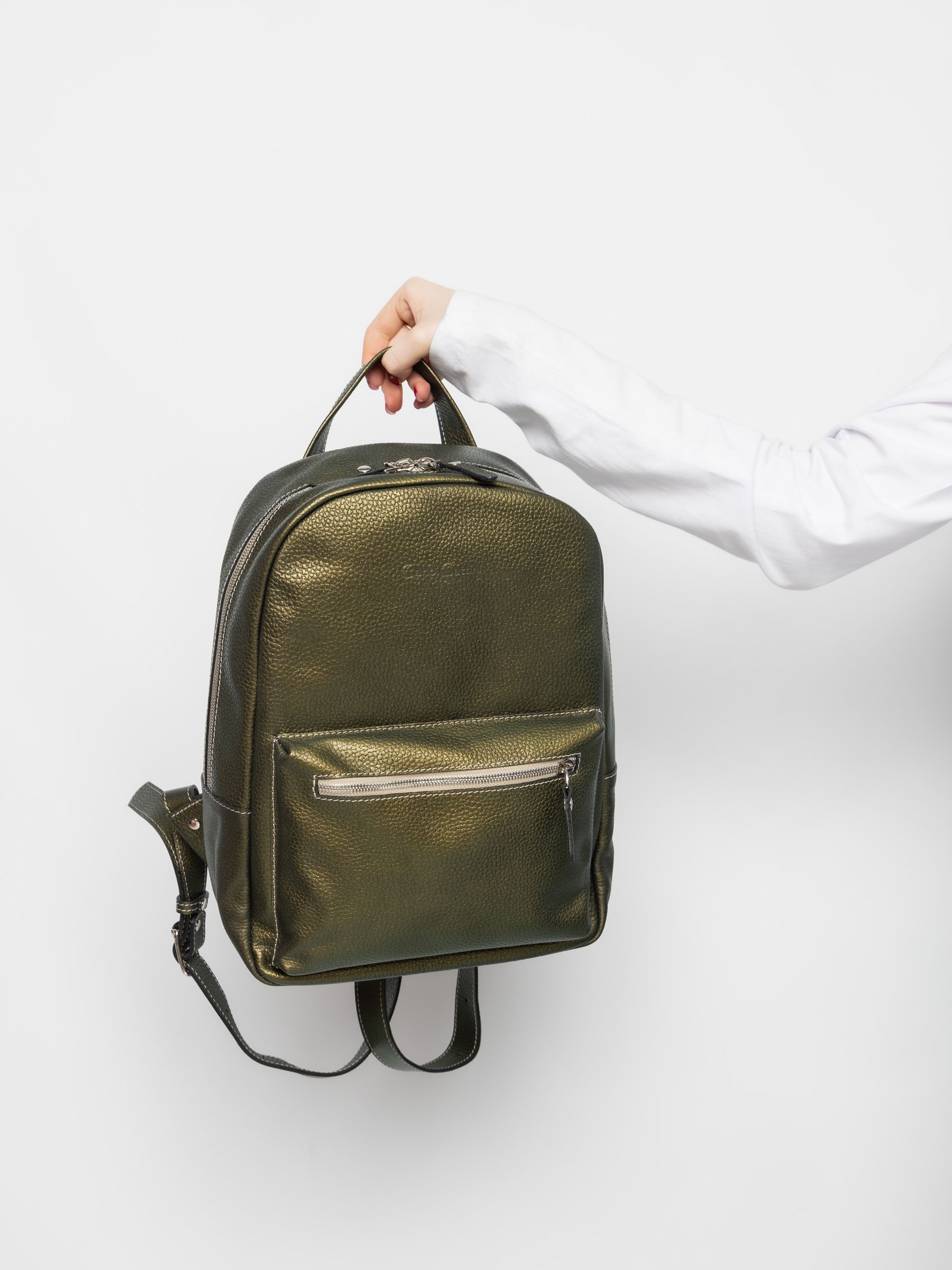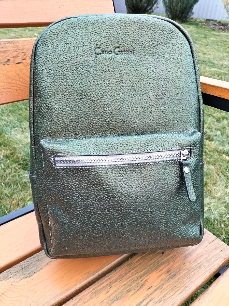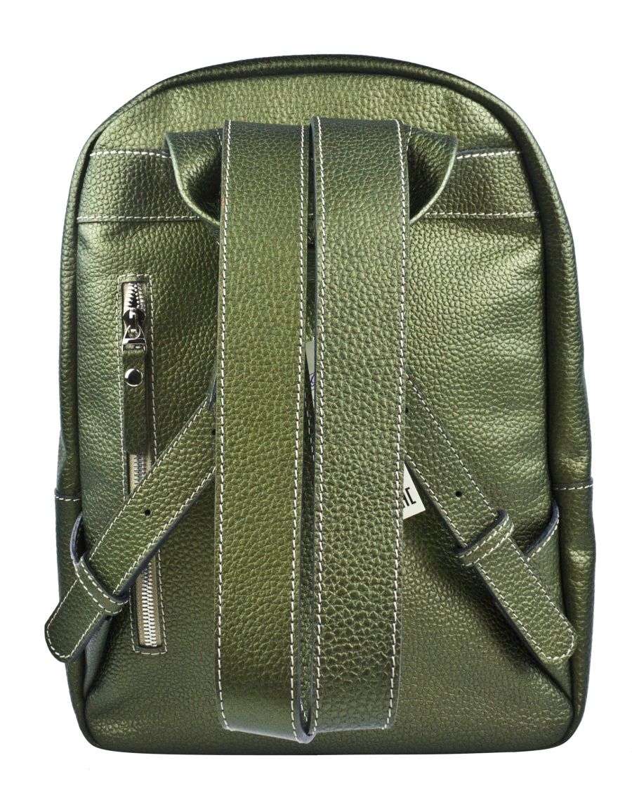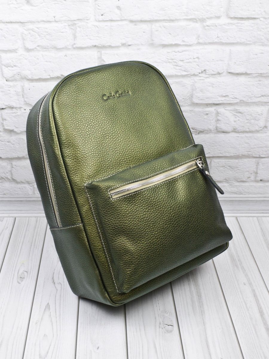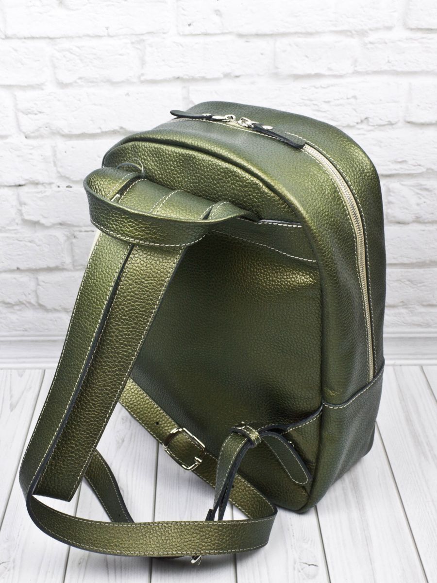 Женский кожаный рюкзак Albiate (Альбиате) выполнен из натуральной кожи цвета "золотой киви" (золотой-зеленый) с эффектом "Хамелеон". Состоит из основного отделения на молнии, внутри которого находятся 2 открытых кармана для папок А4 и карман на молнии. Спереди накладной карман. Сзади - карман на молнии. Ширина лямок - 4 см. Молнии металлические. Видеообзор рюкзака: