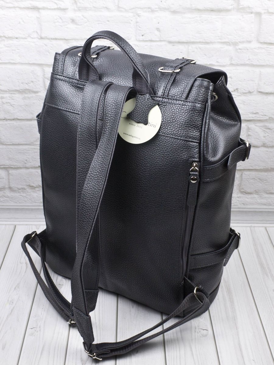 Мужской классический кожаный рюкзак Carlo Gattini Volturno (Вольтурно) выполнен из премиальной натуральной кожи антрацитового цвета (темно-серый). У этого кожаного рюкзака одно большое отделение, которое затягивается ремешком и закрывается клапаном на замках. Внутри отделения есть карман на молнии и отделения для мелочей. В основное отделение есть доступ сбоку через молнию. В рюкзак помещается ноутбук с диагональю до 15.6 дюймов, но лучше его там носить в чехле и вместе с другими вещами. Снаружи два кармана на молнии. Размер внешнего кармана на молнии: 24х25 см. Видеообзор рюкзака: