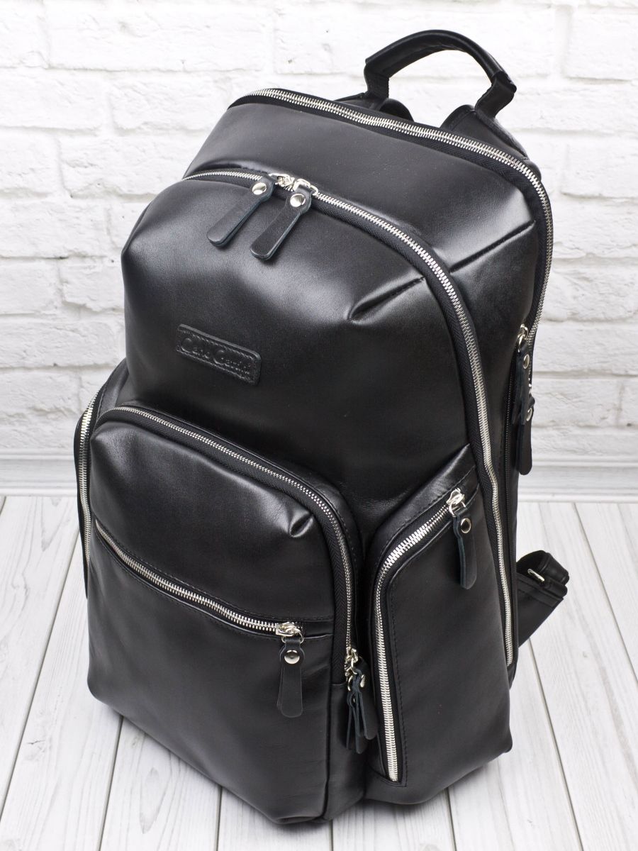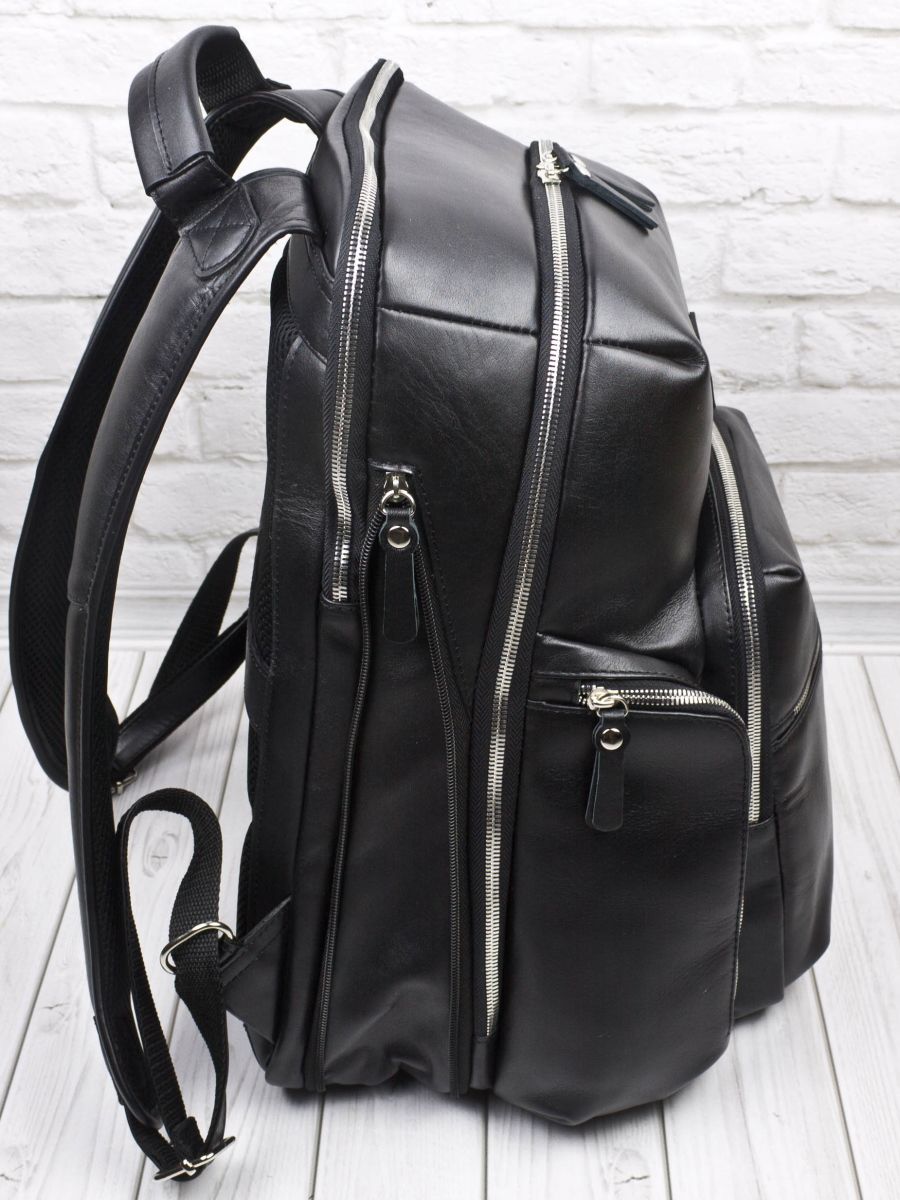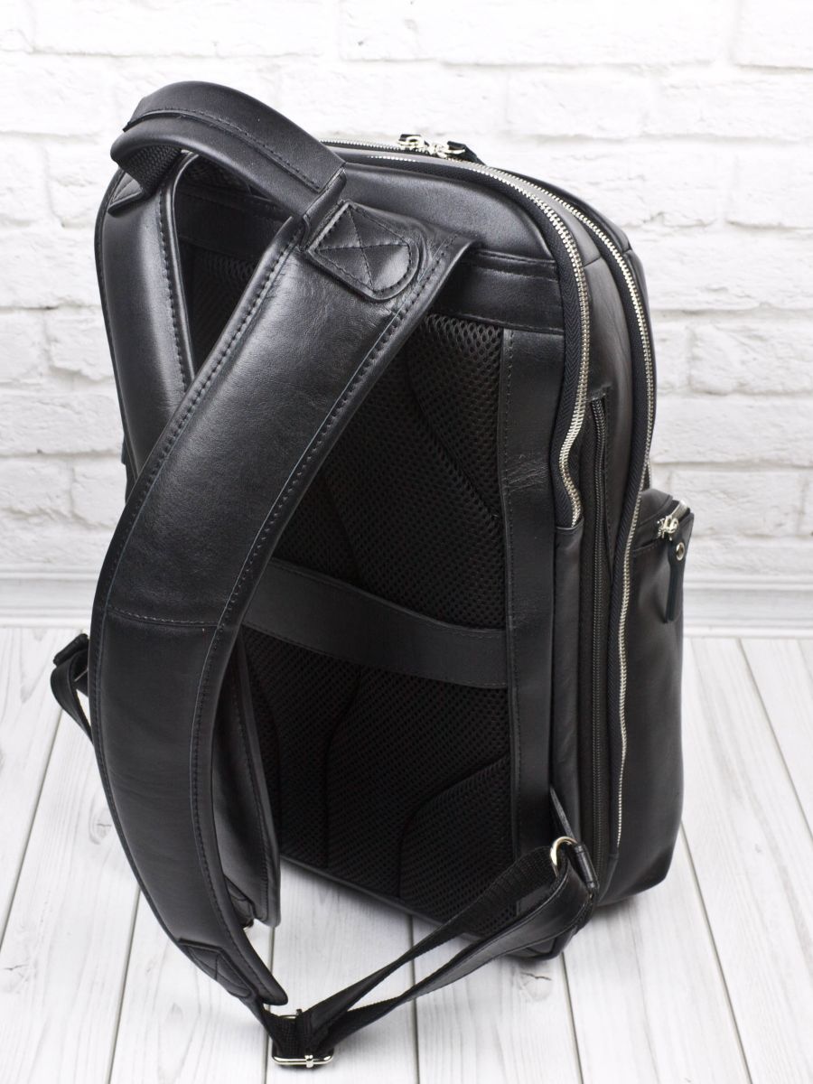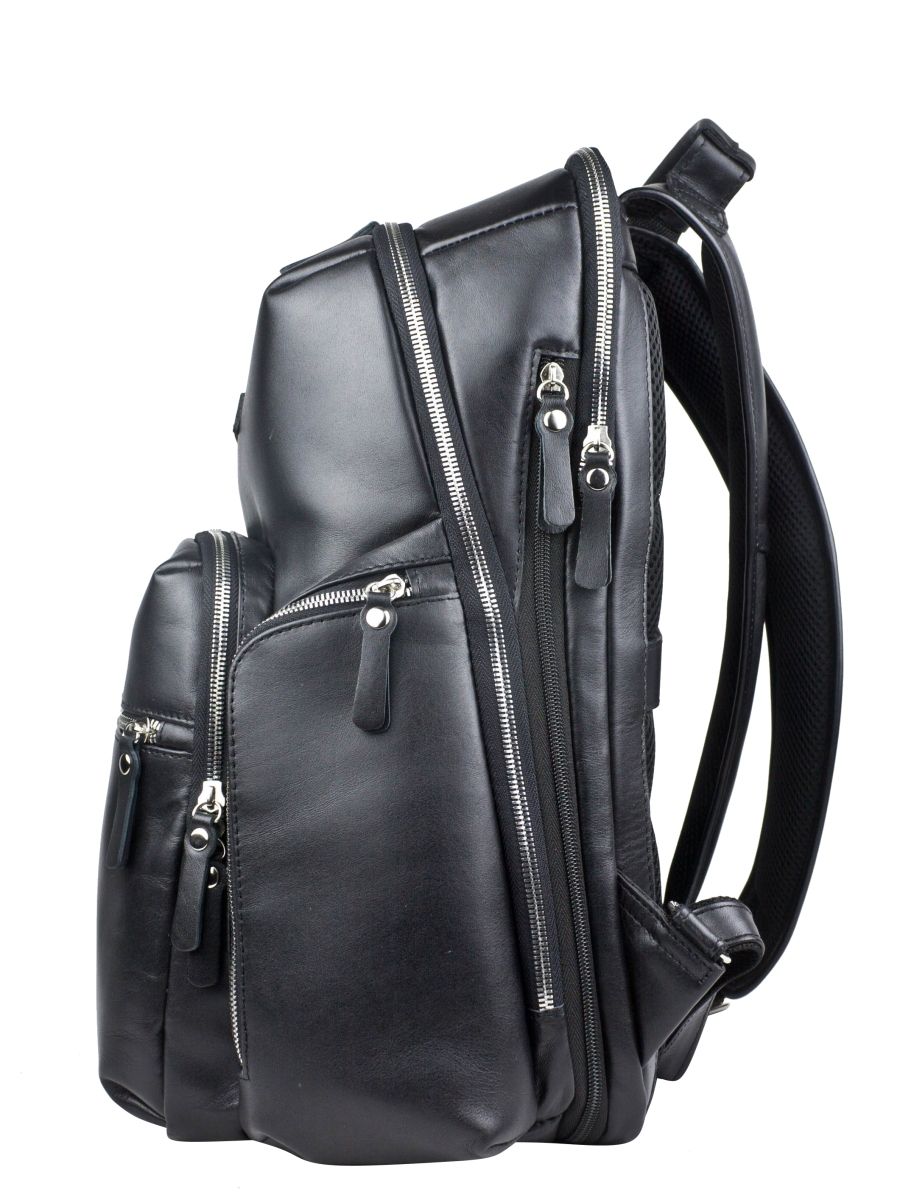 Кожаный рюкзак Bertario (Бертарио) выполнен из премиальной натуральной кожи черного цвета. Это функциональный мужской городской рюкзак, идеально подходит для повседневной эксплуатации. Предусмотрена возможность расширения основного отделения на 6 см, таким образом рюкзак становится пригодным для командировок и небольших путешествий. Состоит из двух основных отделений: Первое (у спинки) - специальное отделение для ноутбука до 15,6 дюймов; второе - объемное отделение с карманом для документов и двумя открытыми карманами. Расширяется специальной молнией дополнительно на 6 см. Спинка сделана из сетчатого вентилируемого материала и уплотнена. Лямки регулируются по длине, сделаны мягкими с вентилируемой сеткой сзади. Спереди большой накладной карман на молнии, внутри которого карман на молнии и открытый карман. На кармане - прорезной карман на молнии. По бокам два вместительных кармана на молнии. Видеообзор рюкзака: