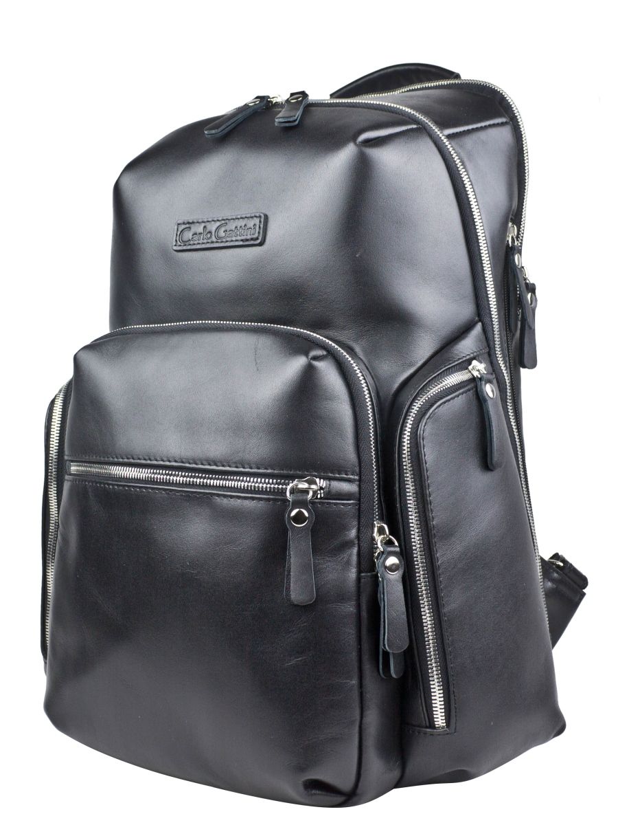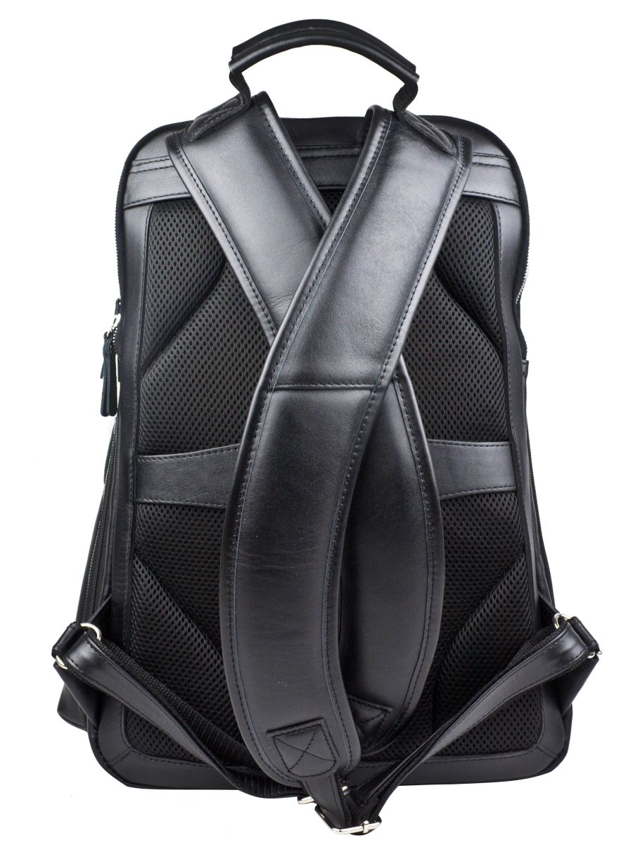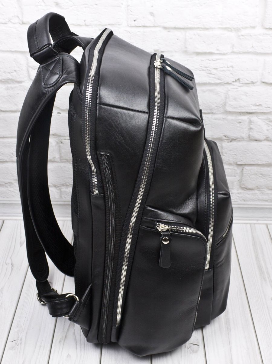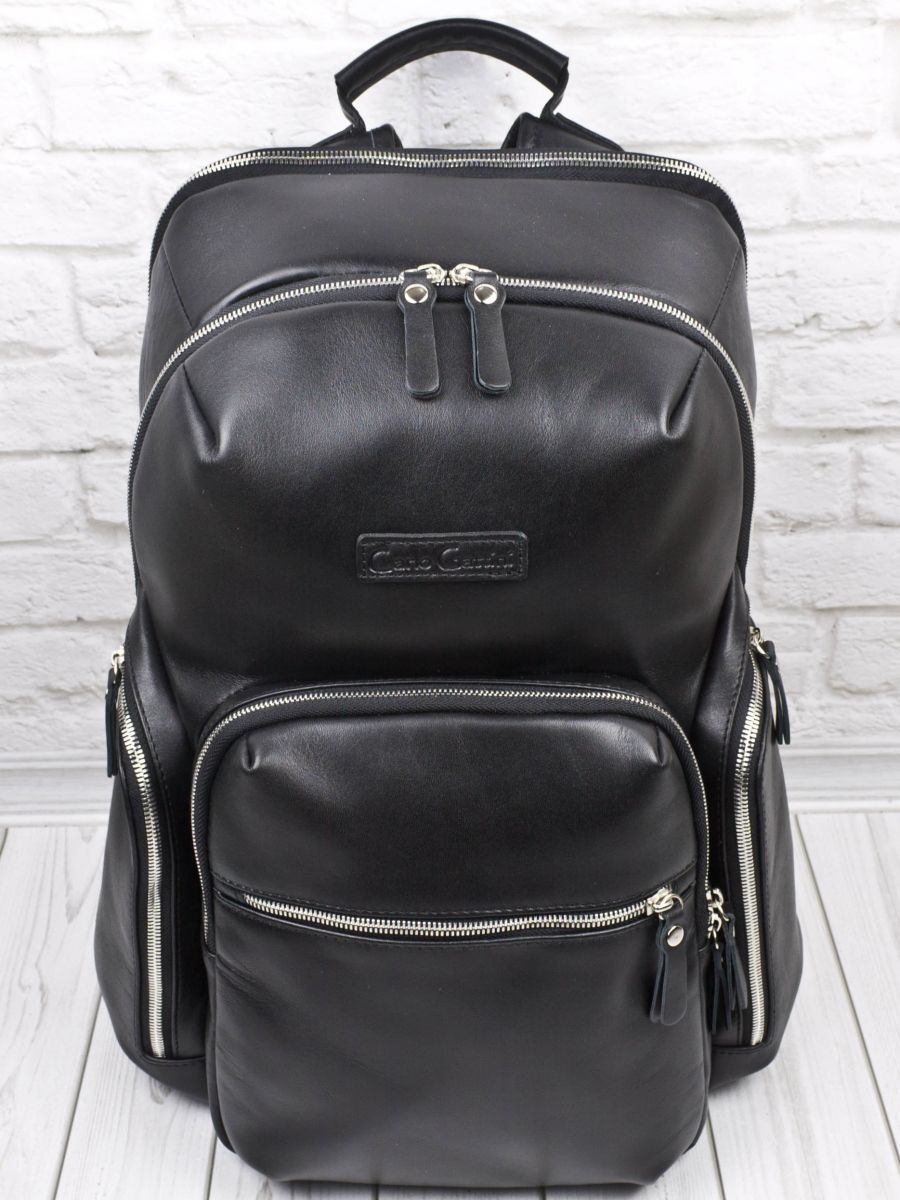 Кожаный рюкзак Bertario (Бертарио) выполнен из премиальной натуральной кожи черного цвета. Это функциональный мужской городской рюкзак, идеально подходит для повседневной эксплуатации. Предусмотрена возможность расширения основного отделения на 6 см, таким образом рюкзак становится пригодным для командировок и небольших путешествий. Состоит из двух основных отделений: Первое (у спинки) - специальное отделение для ноутбука до 15,6 дюймов; второе - объемное отделение с карманом для документов и двумя открытыми карманами. Расширяется специальной молнией дополнительно на 6 см. Спинка сделана из сетчатого вентилируемого материала и уплотнена. Лямки регулируются по длине, сделаны мягкими с вентилируемой сеткой сзади. Спереди большой накладной карман на молнии, внутри которого карман на молнии и открытый карман. На кармане - прорезной карман на молнии. По бокам два вместительных кармана на молнии. Видеообзор рюкзака: