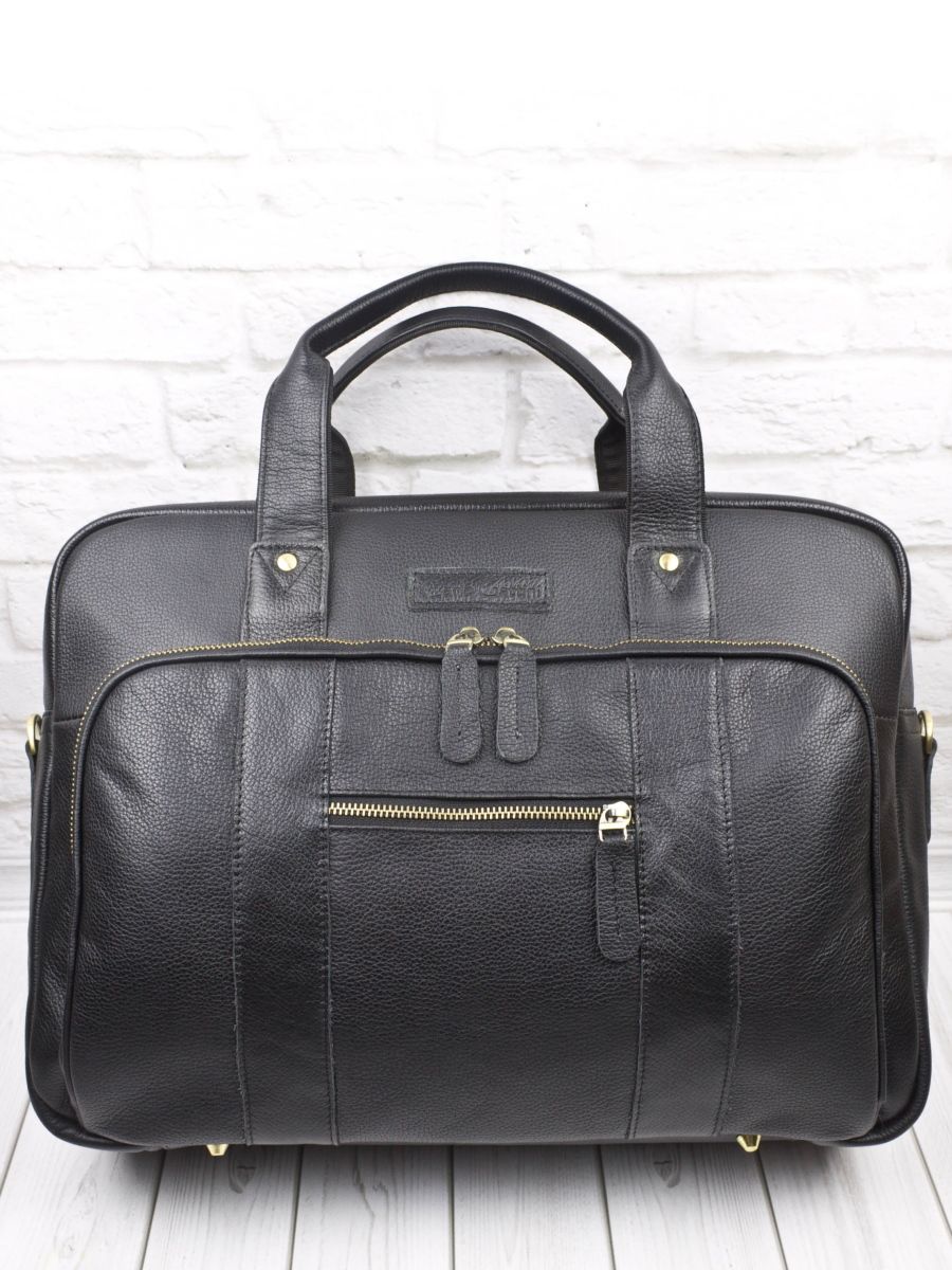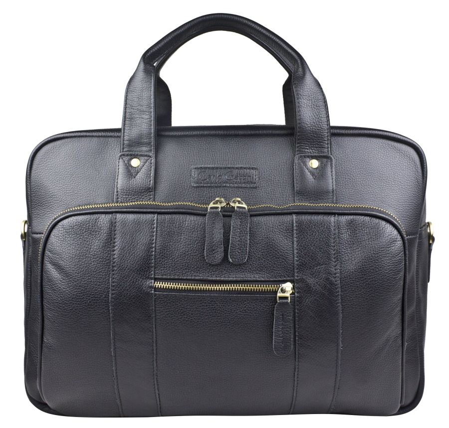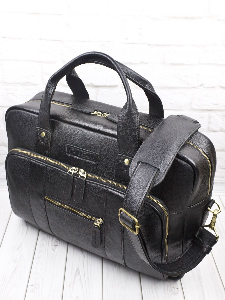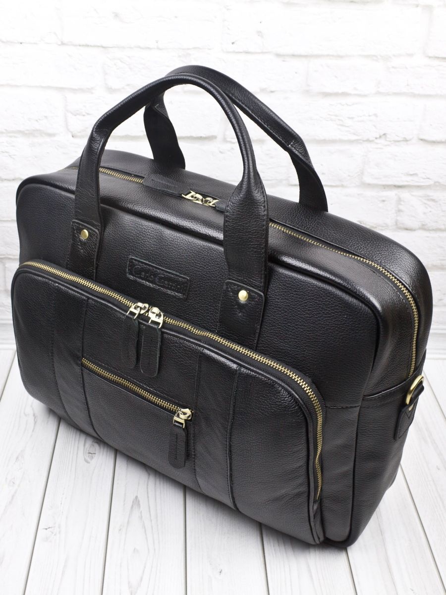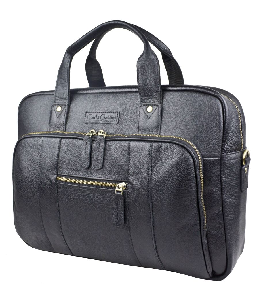 Цвет: Черный Материал: Натуральная кожа Вместительная кожаная сумка для ноутбука Carlo Gattini Ruffo (Руффо) выполнена из натуральной кожи черного цвета. Эта солидная и вместительная сумка состоит из основного отделения, внутри которого есть отделение для ноутбука (помещаются ноутбуки с диагональю до 17 дюймов), карман на молнии и отделения для мелочей и авторучек. В основном отделении возможно разместить ноутбук с диагональю до 17,3 дюймов. На задней стенке: вместительный карман на молнии. На передней: накладной карман на молнии размером 36х24 см, внутри которого также есть карман на молнии. Снаружи есть прорезной карман на молнии. В комплекте есть съемный наплечный ремень с кожаным наплечником. Видеообзор сумки: