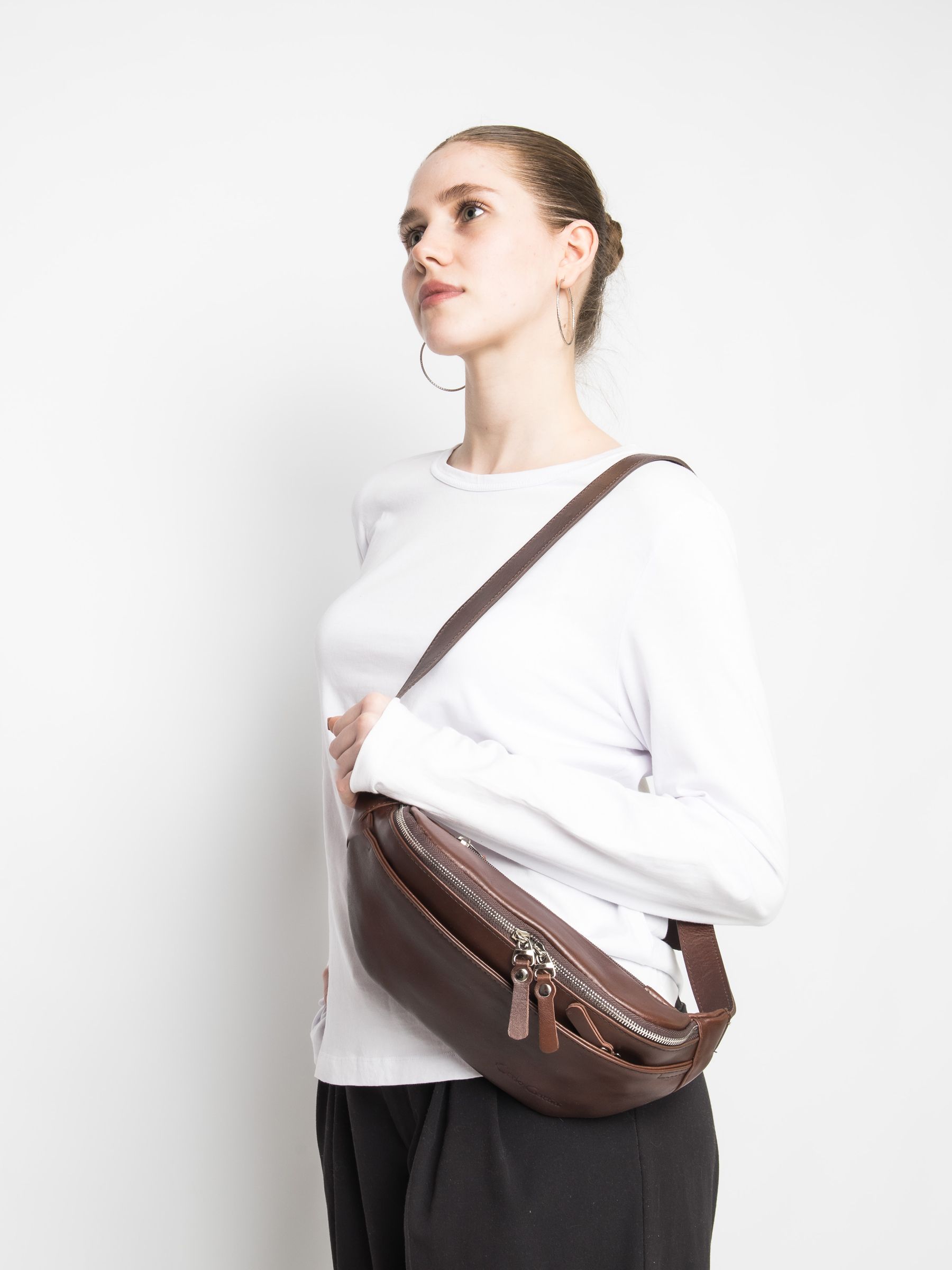 Кожаная поясная сумка Atessa Premium brown (арт. 7009-53)