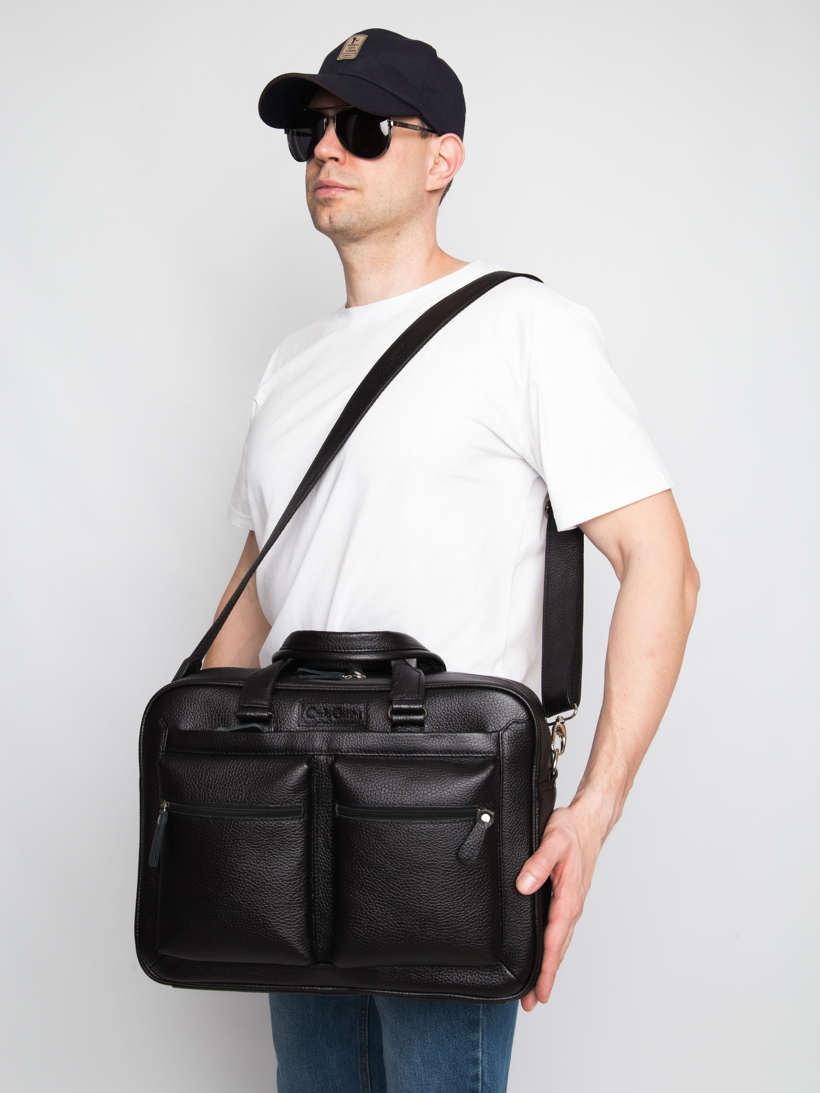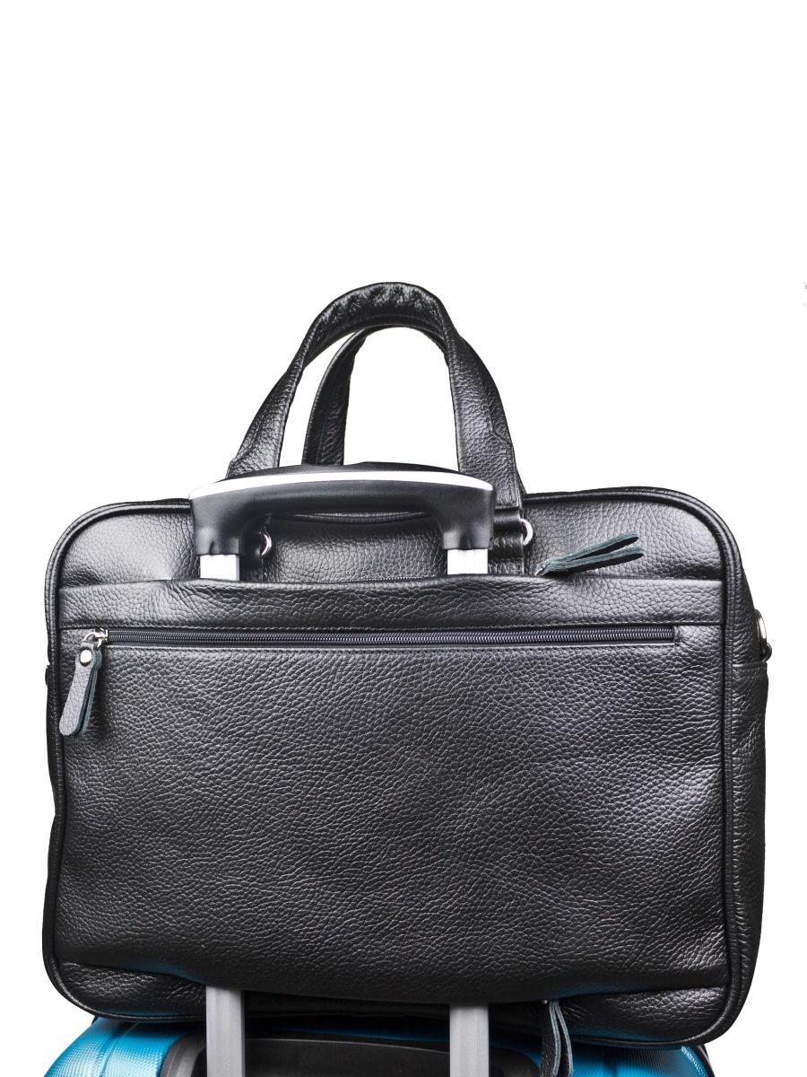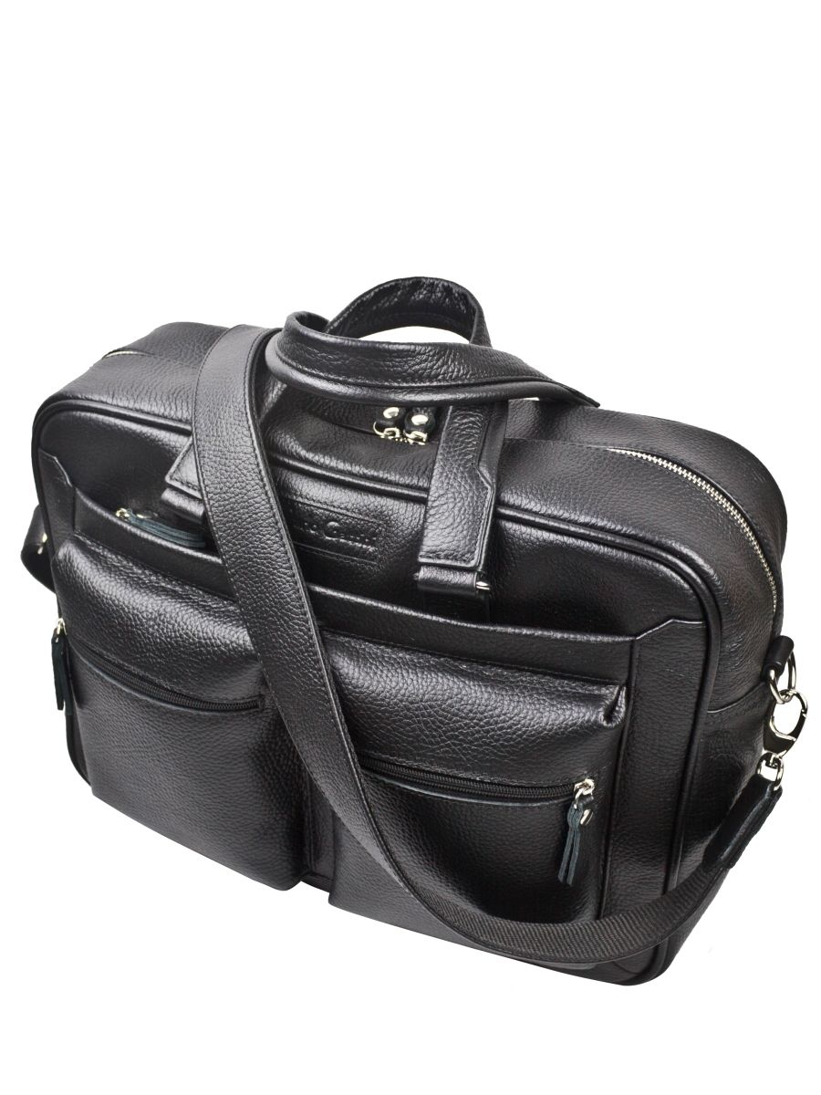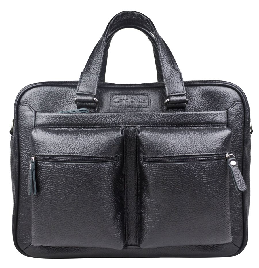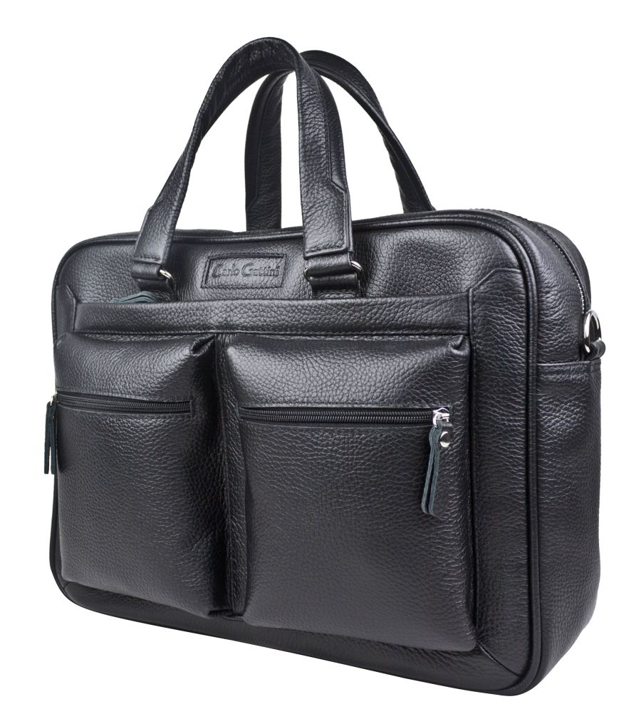 Кожаная сумка для ноутбука Carlo Gattini Riace (Риаче) NEW выполнена из натуральной кожи черного цвета. Состоит из основного отделения на молнии, внутри которого есть отделение для ноутбука с диагональю до 14 дюймов и карман на молнии. В основное отделение помещаются ноутбуки с диагональю до 17 дюймов. Спереди - три кармана на молнии, сзади - карман на молнии и сквозной карман для крепления на чемодан. В комплекте есть съемный кожаный наплечный ремень. Видеобзор сумки: