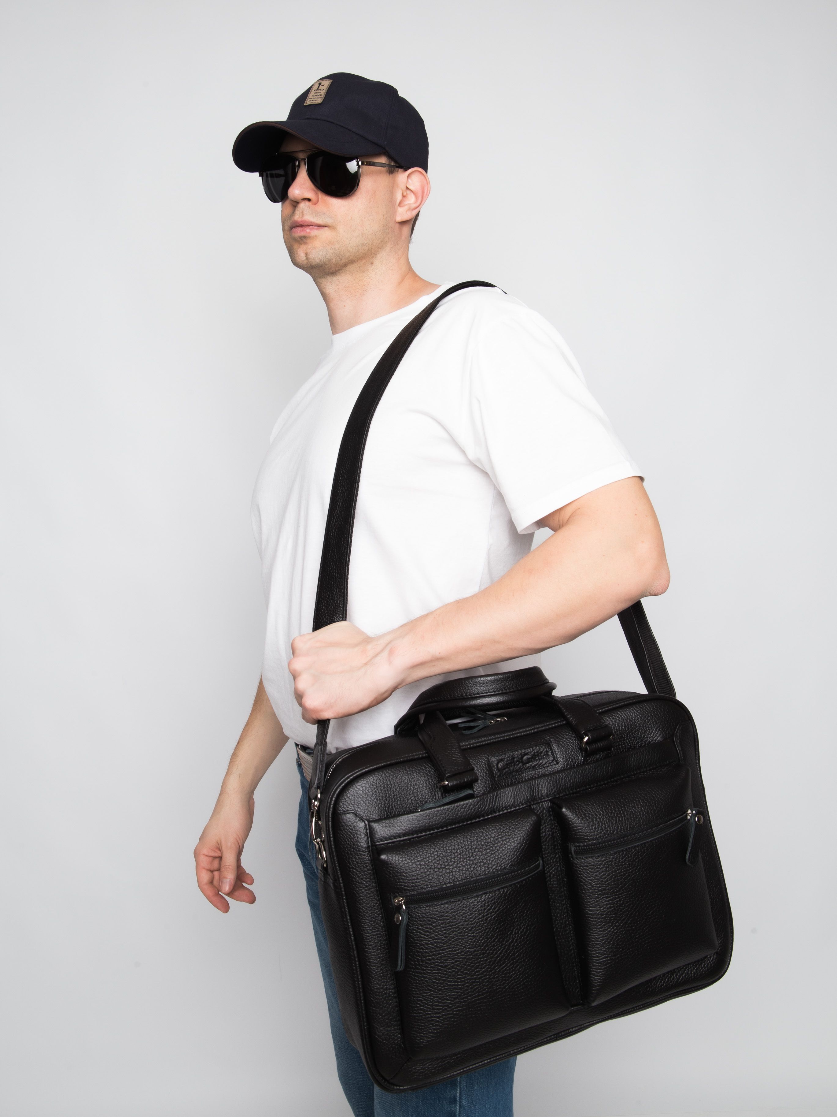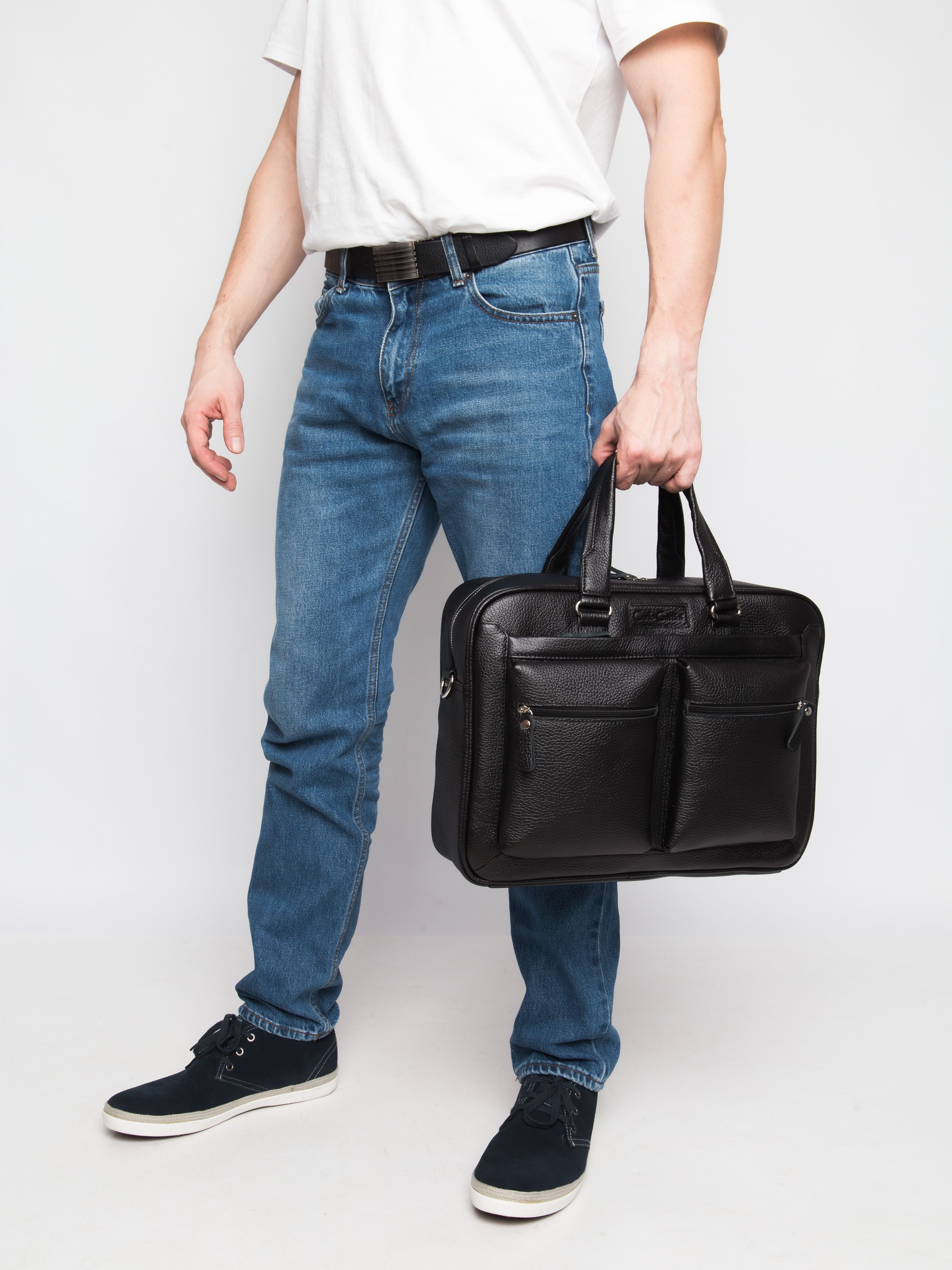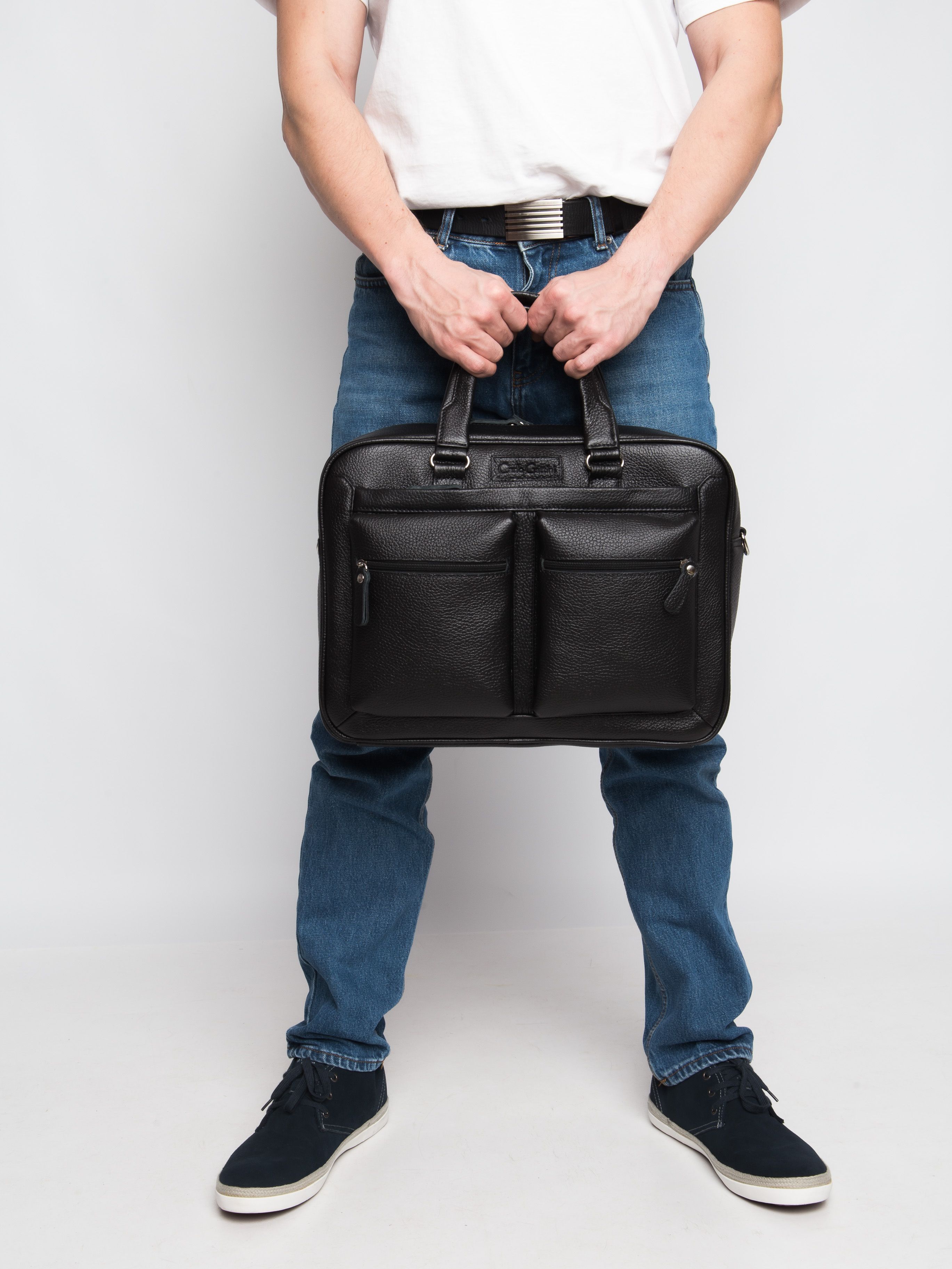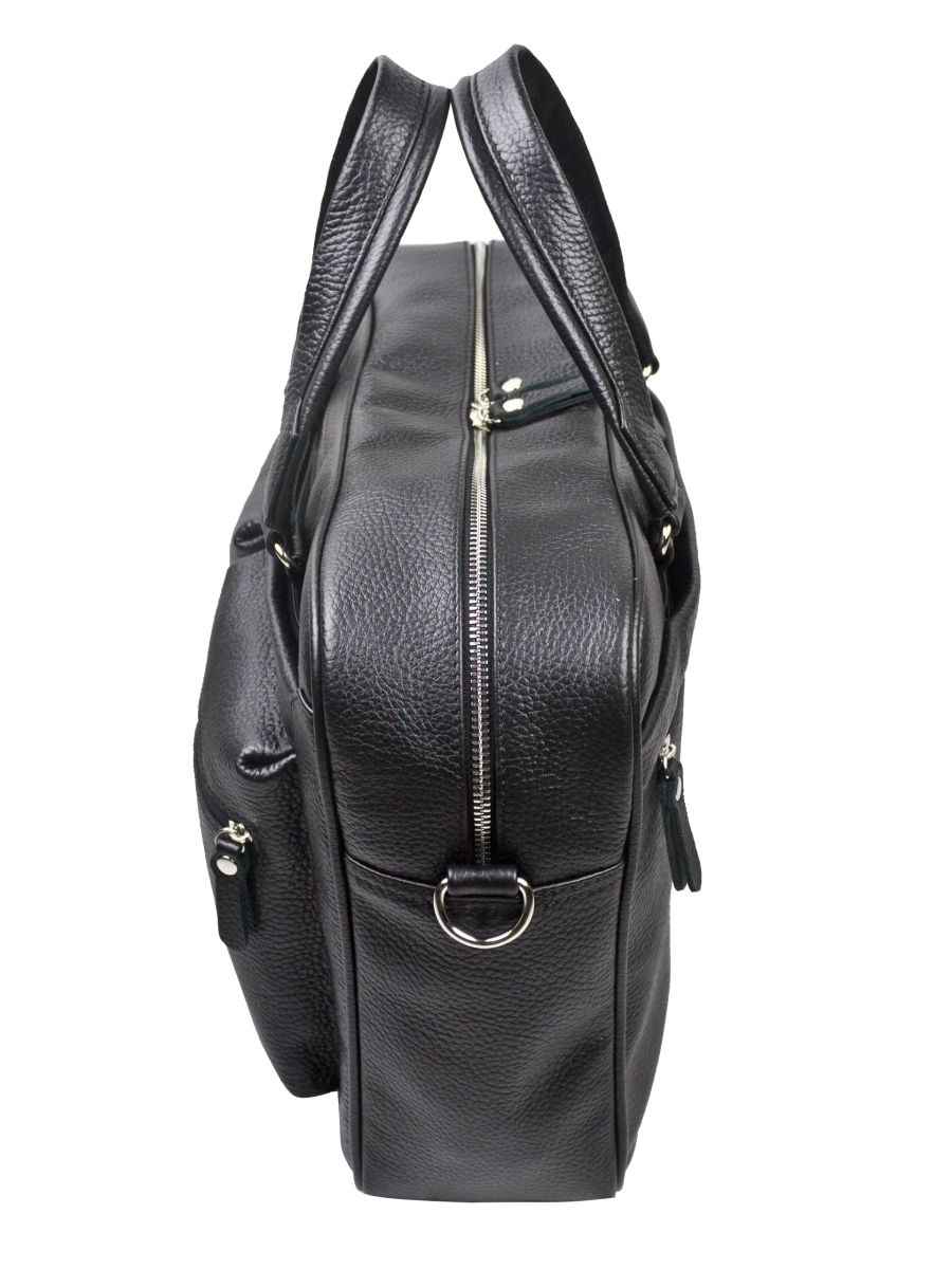 Кожаная сумка для ноутбука Carlo Gattini Riace (Риаче) NEW выполнена из натуральной кожи черного цвета. Состоит из основного отделения на молнии, внутри которого есть отделение для ноутбука с диагональю до 14 дюймов и карман на молнии. В основное отделение помещаются ноутбуки с диагональю до 17 дюймов. Спереди - три кармана на молнии, сзади - карман на молнии и сквозной карман для крепления на чемодан. В комплекте есть съемный кожаный наплечный ремень. Видеобзор сумки: