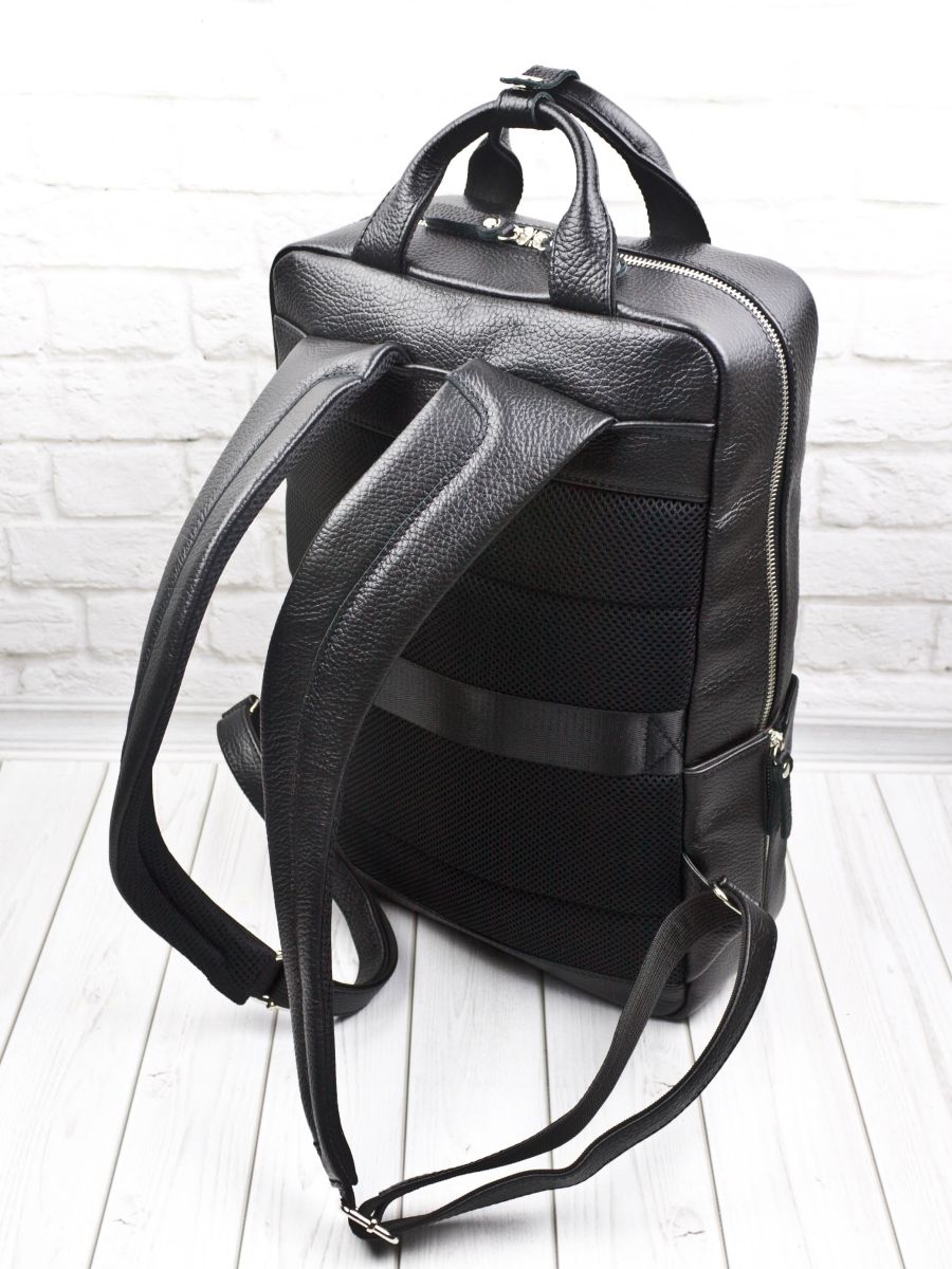 Цвет: черный Материал: Натуральная кожа Кожаный рюкзак Viterbo (Витербо) выполнен из натуральной кожи черного цвета. Рюкзак имеет одно основное отделение, которое закрывается на молнию. Внутри отделение для ноутбука до 15,6 дюймов, карман на молнии и открытый карман для документов. Спереди два кармана на молнии, внутри одного органайзер из небольших отделений. Лямки регулируются по длине. Спинка и лямки выполнены из сетчатого материала для лучшей циркуляции воздуха и сделана мягкой для удобного ношения. Видеообзор рюкзака: