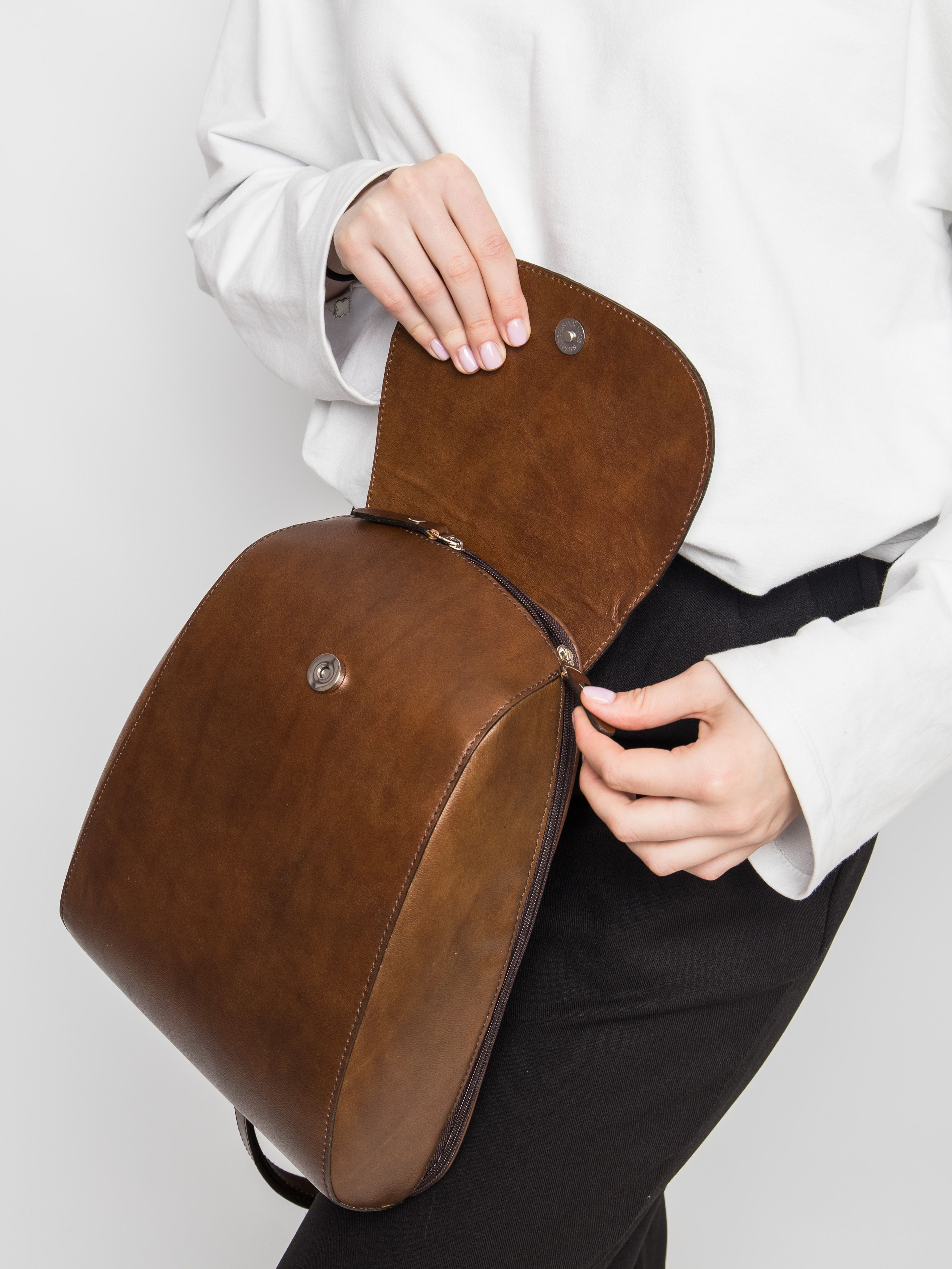 Женский рюкзак Antessio NEW (Антессио) выполнен из натуральной кожи коричневого цвета. Состоит из основного отделения на молнии под клапаном, внутри которого находятся два открытых кармана и карман на молнии. Видеообзор рюкзака: