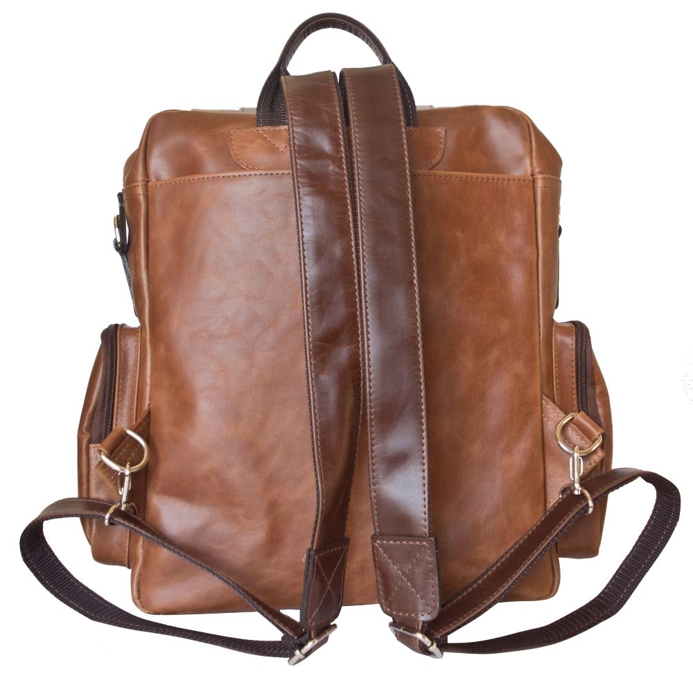 Кожаный рюкзак Fiorentino (Фиорентино) выполнен из высококачественной натуральной кожи коньячного и темно-коричневого цвета. Под клапаном, который закрывается на магнитные кнопки, одно основное отделение, карман на молнии и два накладных кармана. Внутри - карман на молнии. Цвет фурнитуры - серебро. По бокам - карманы на молнии. Внешний размер основного отделения - 35х31х12 см. Легко вмещает формат А4. Видеообзор рюкзака: