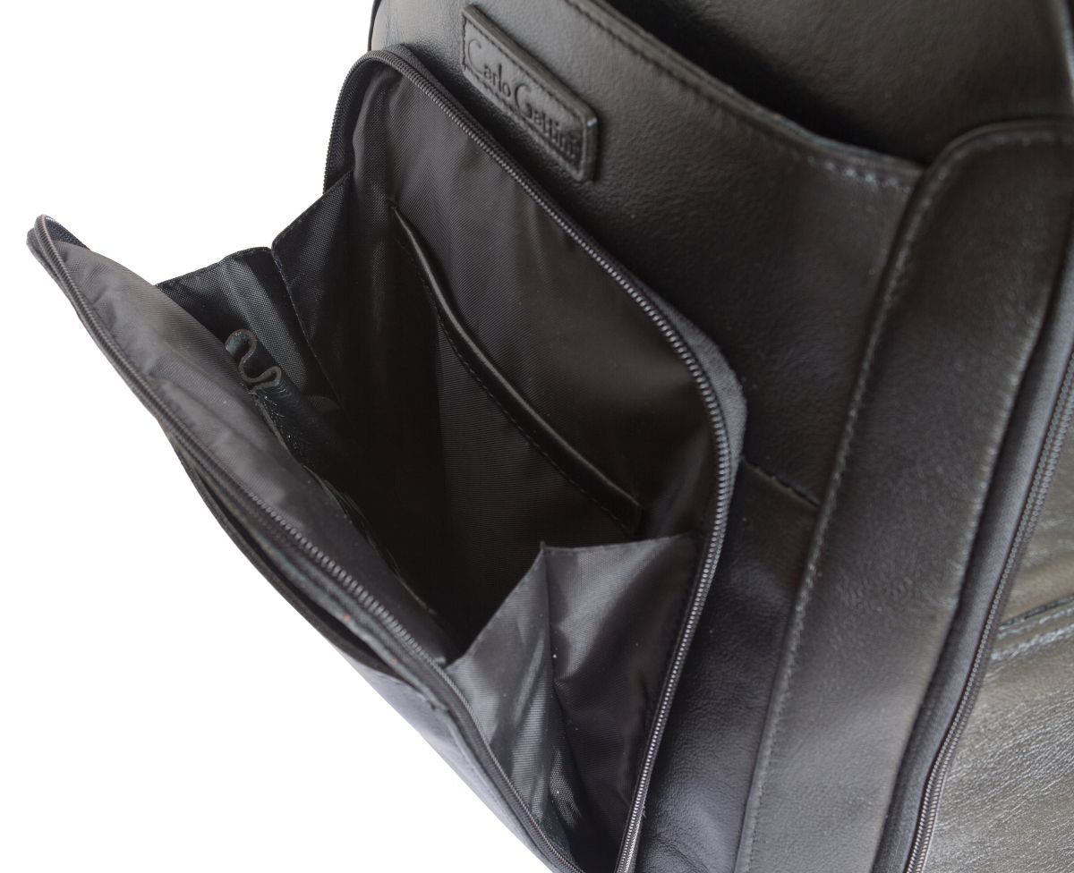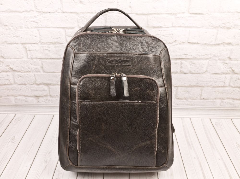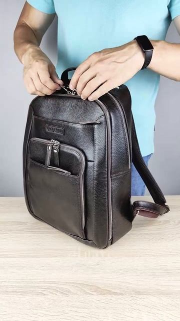 Цвет: темно-коричневый Материал: Натуральная кожа Кожаный рюкзак Monfestino (Монфестино) выполнен из натуральной кожи темно-коричневого цвета. Рюкзак имеет два основных отделения, которые закрываются на молнию. Внутри одного из отделений (ближе к спинке) отделение для мобильного устройства (с диагональю до 14 дюймов). Внутри второго отделения два кармана для документов на липучке и карман на молнии. Лямки регулируются по длине. Спереди - накладной карман на молнии и два прорезных кармана на молнии. Внутри накладного кармана отделения для пластиковых карт и ручек. Спинка и лямки выполнены из сетчатого материала для лучшей циркуляции воздуха и сделана мягкой для удобного ношения. Ширина лямок сверху - 8,5 см. Видеообзор рюкзака: