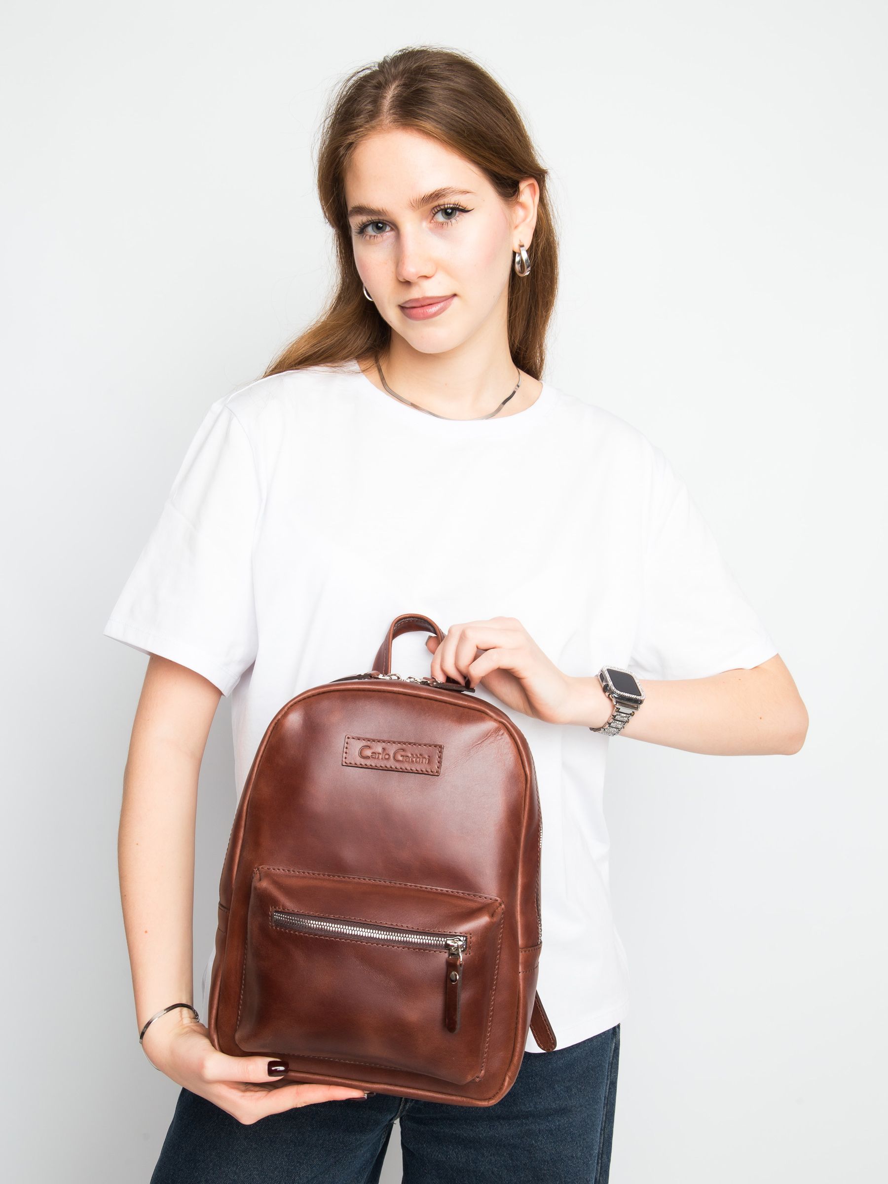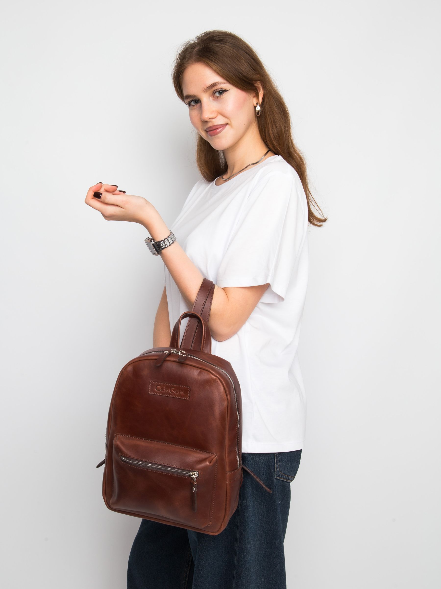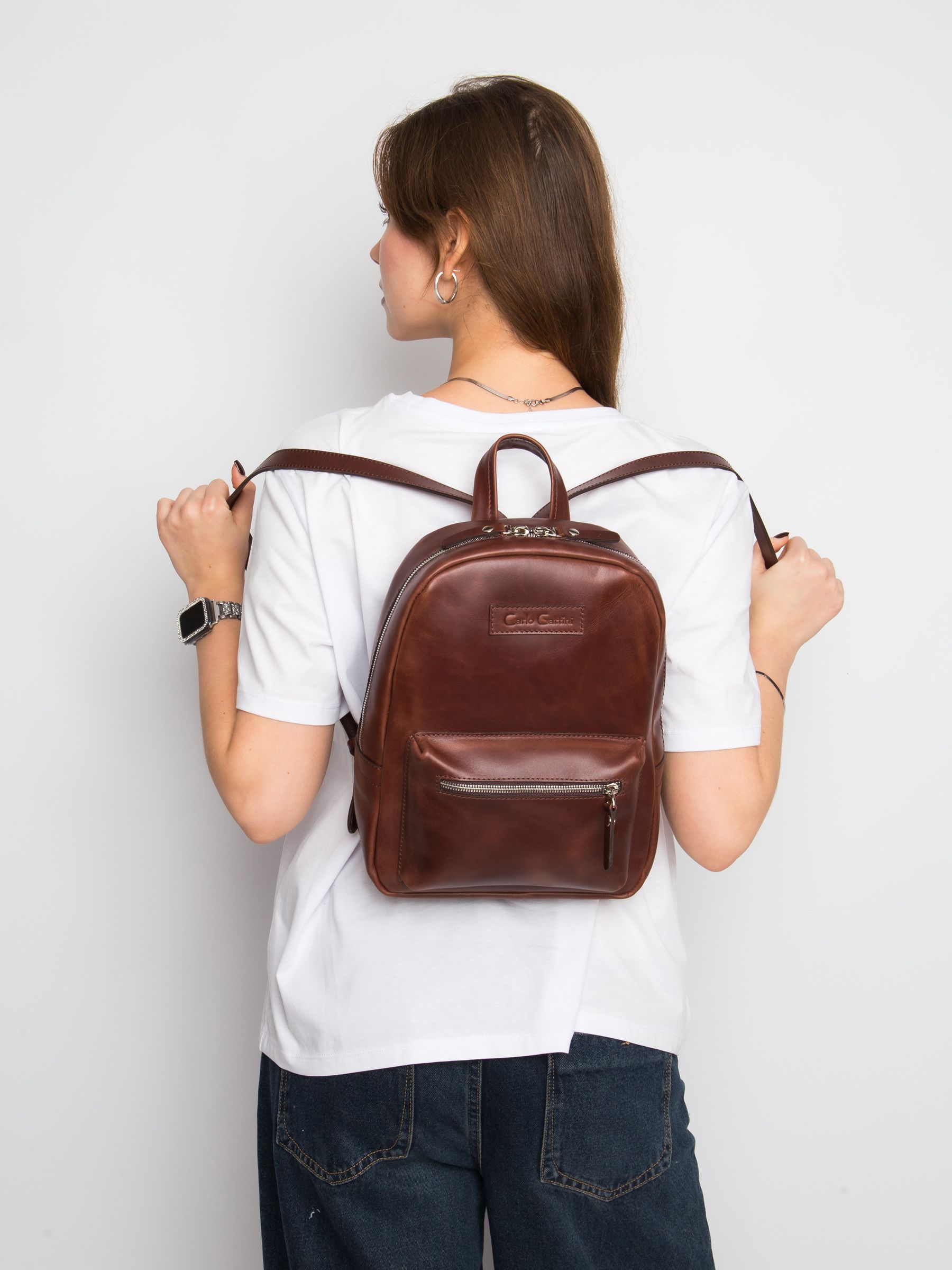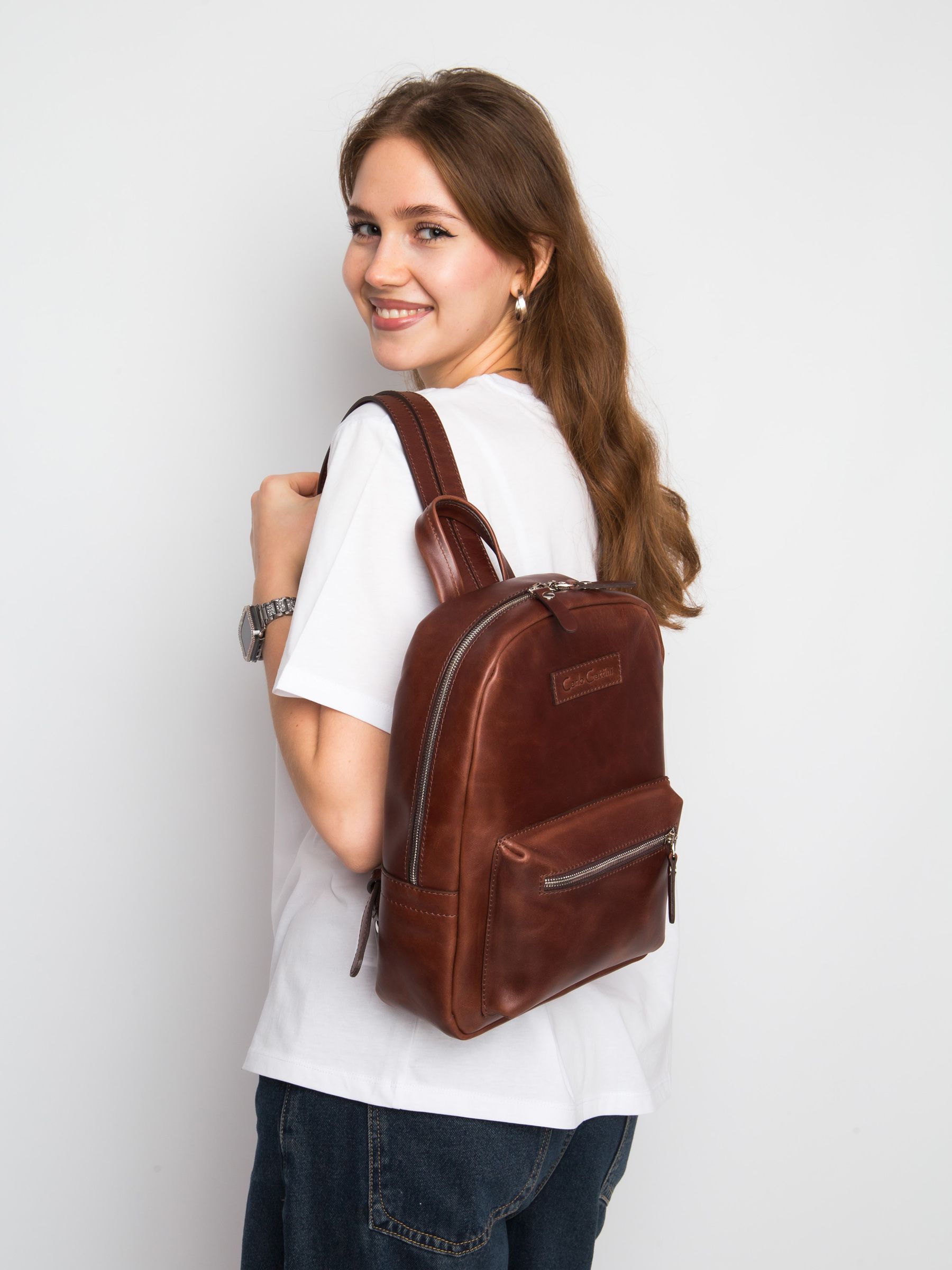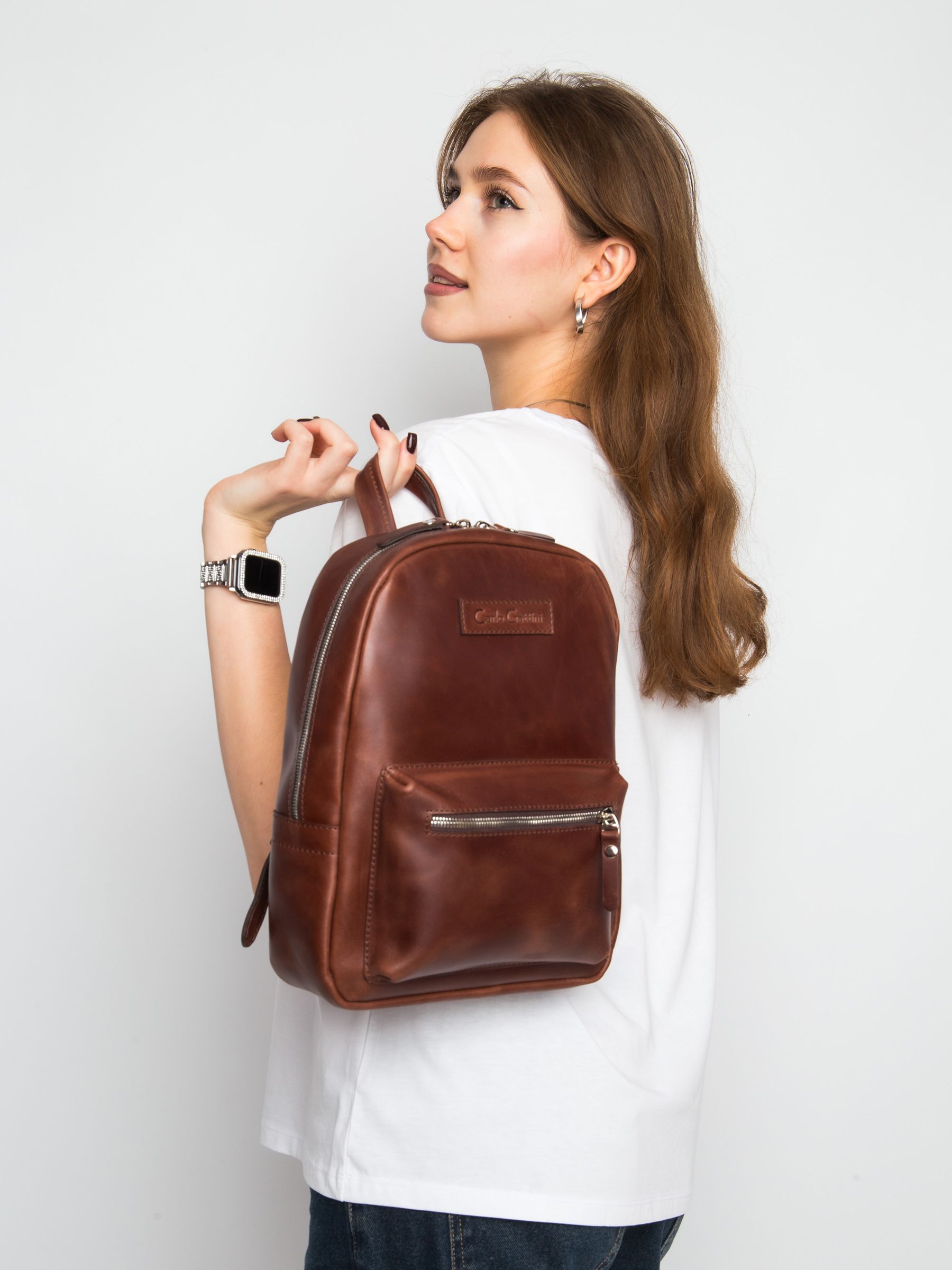 Женский кожаный рюкзак Anzolla (Анцолла) выполнен из натуральной кожи коньячного цвета. Состоит из основного отделения на молнии, внутри которого находится отделение на молнии и отделения для мелочей. Спереди накладной карман. Сзади - карман на молнии. Молнии металлические. Рюкзак выполнен полностью без подклада. Видеообзор рюкзака: