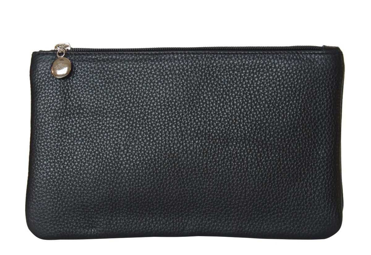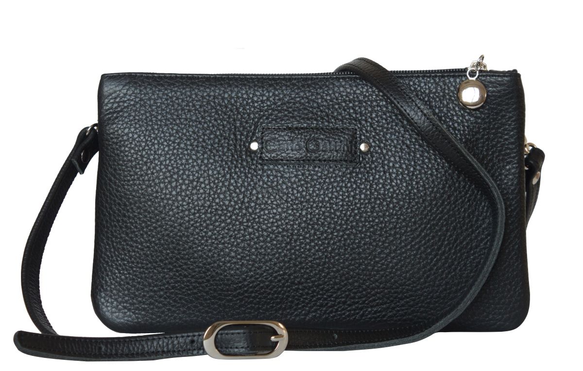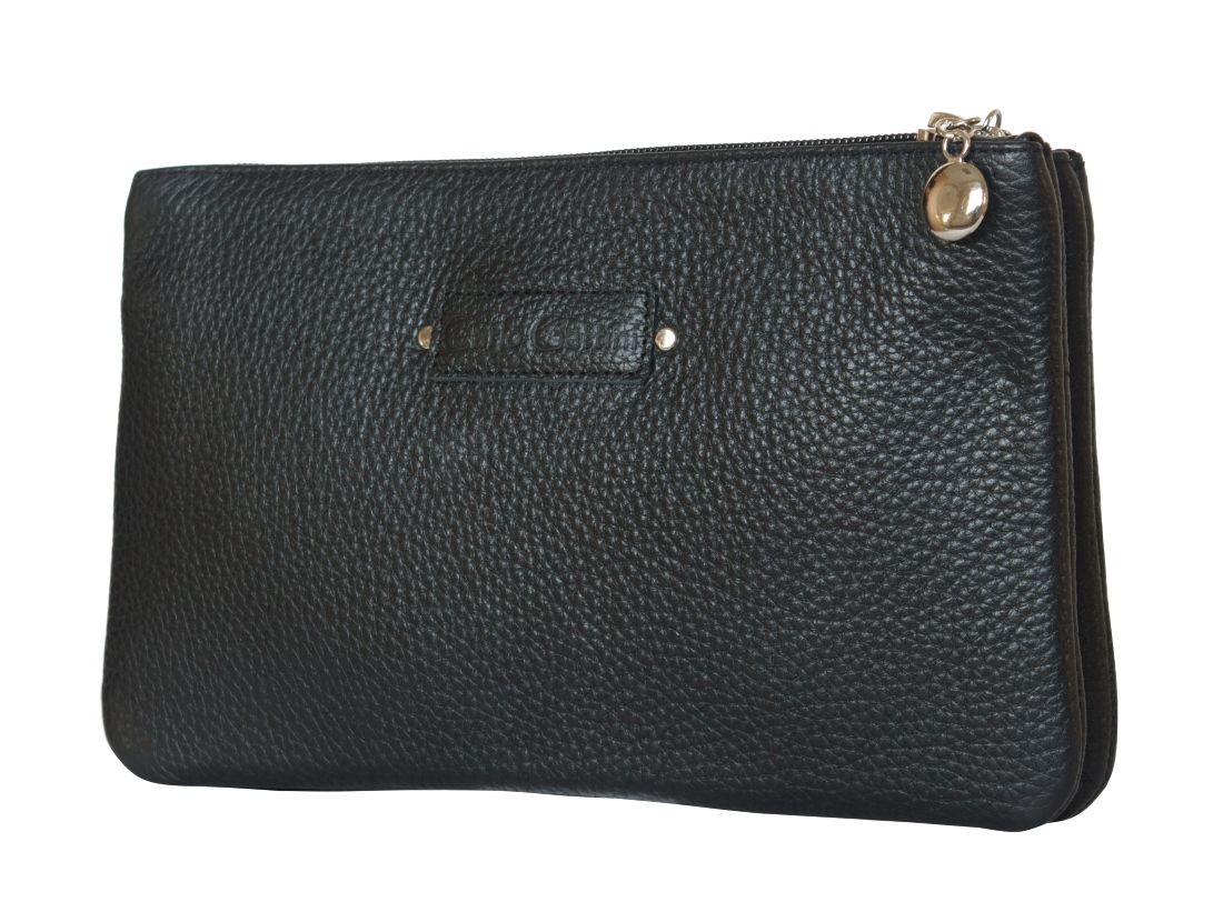 Небольшая кожаная женская сумка - клатч Cesine (Чезине) выполнена из натуральной кожи черного цвета. Сумка состоит из двух основных отделений на молнии, между которыми отделение на кнопке. Кожаный плечевой ремень регулируется по длине. Видеообзор сумки: