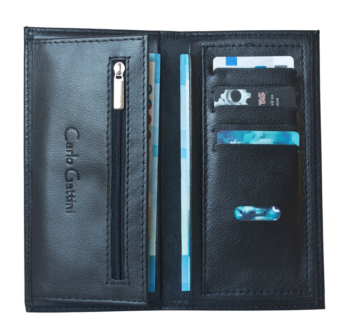 Кожаный кошелек Artciano (Арчиано) выполнен из натуральной кожи черного цвета. Внутри 4 отделения для купюр или документов, 1 отделение на молнии для монет, 12 отделений для карт (одно с окошком), 1 отделения для документов.