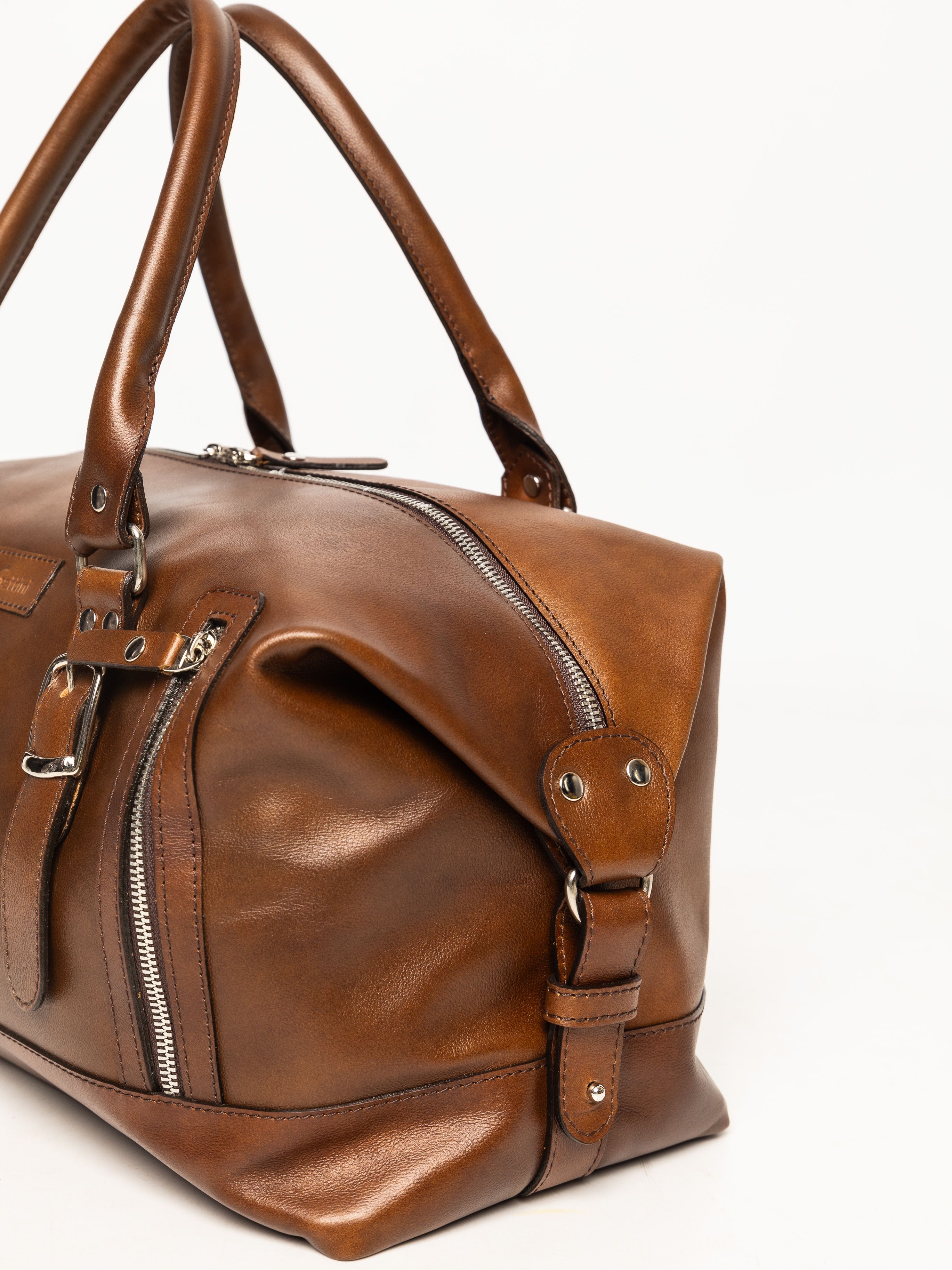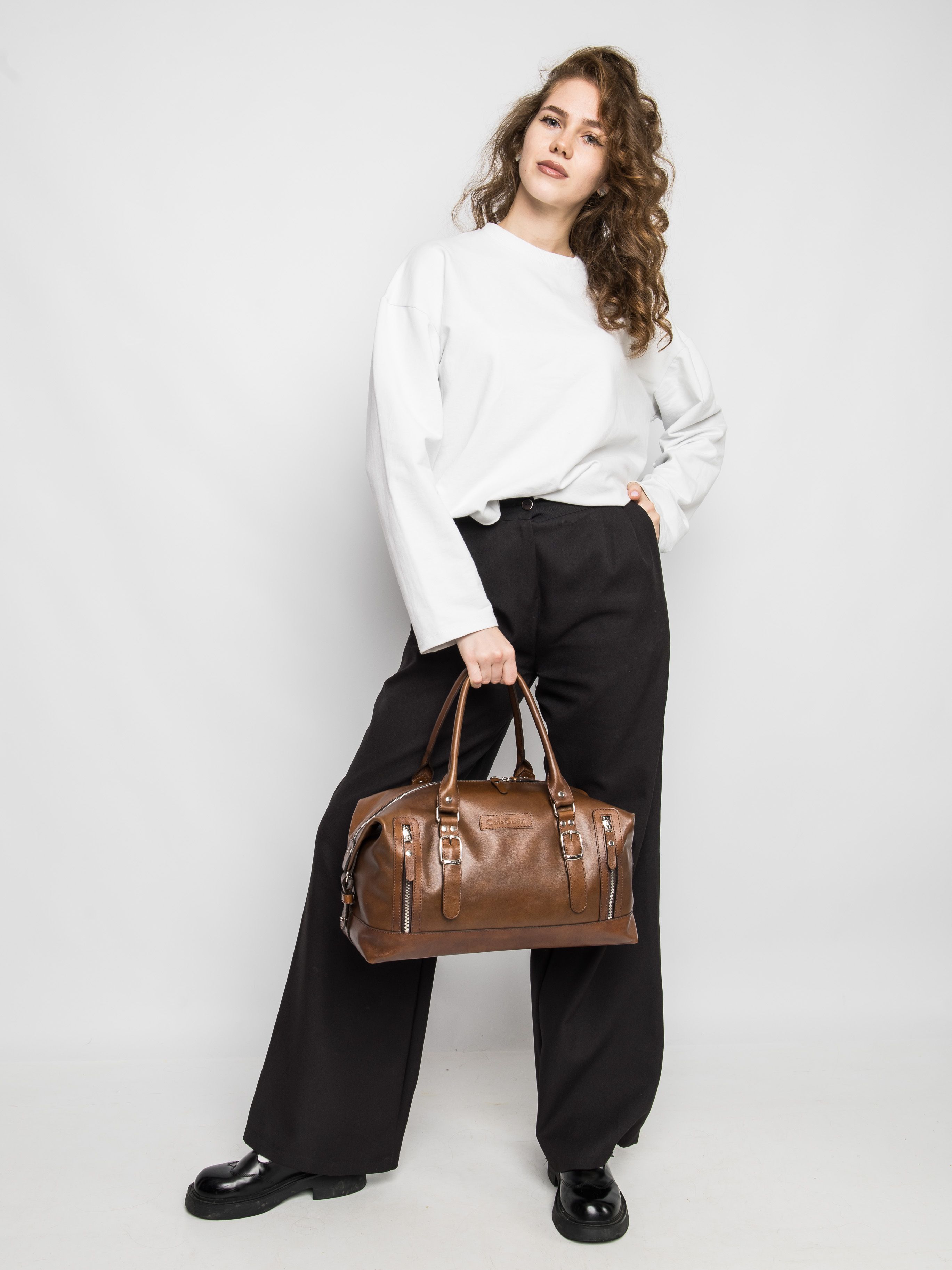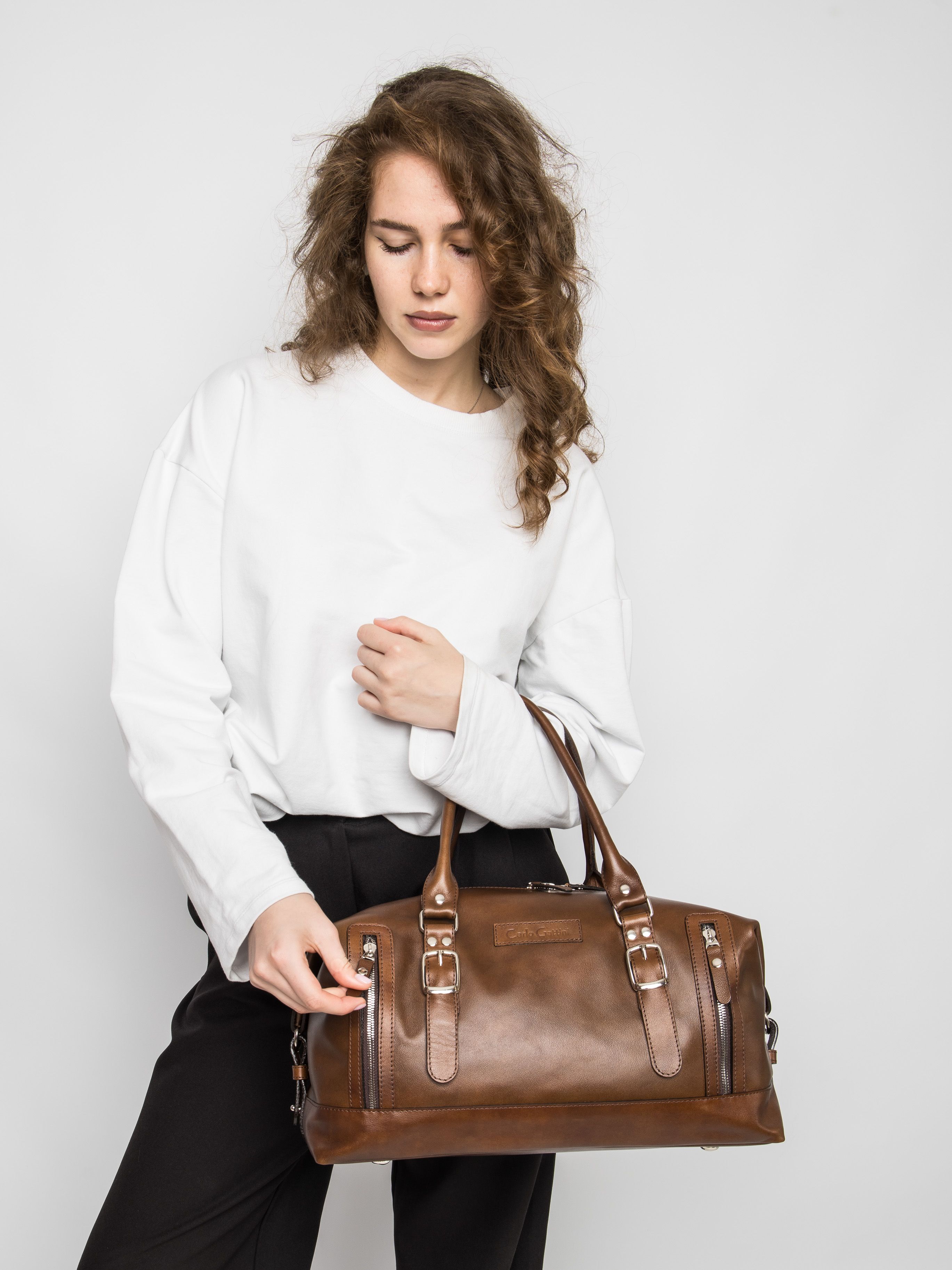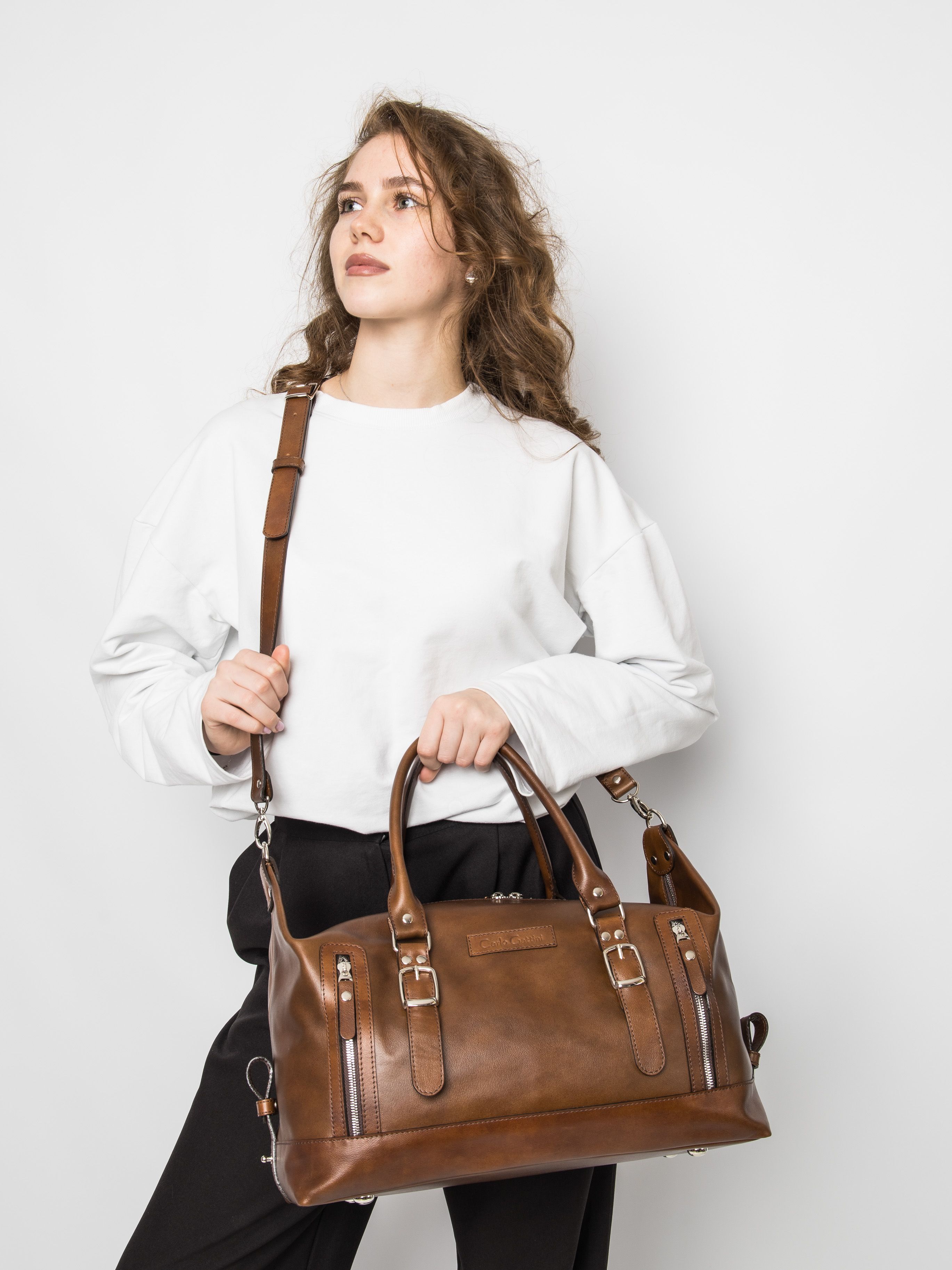 Дорожная сумка Carlo Gattini Ravenna Premium (Равенна) выполнена из натуральной премиальной лицевой кожи коричневого цвета. Эта небольшая дорожная сумка состоит из основного отделения, внутри которого карман на молнии и открытый карман. Спереди два кармана на молнии. В комплекте идет регулируемый плечевой ремень. Премиум серию отличают: - Натуральная лицевая кожа высшего качества; - Премиальная фурнитура;